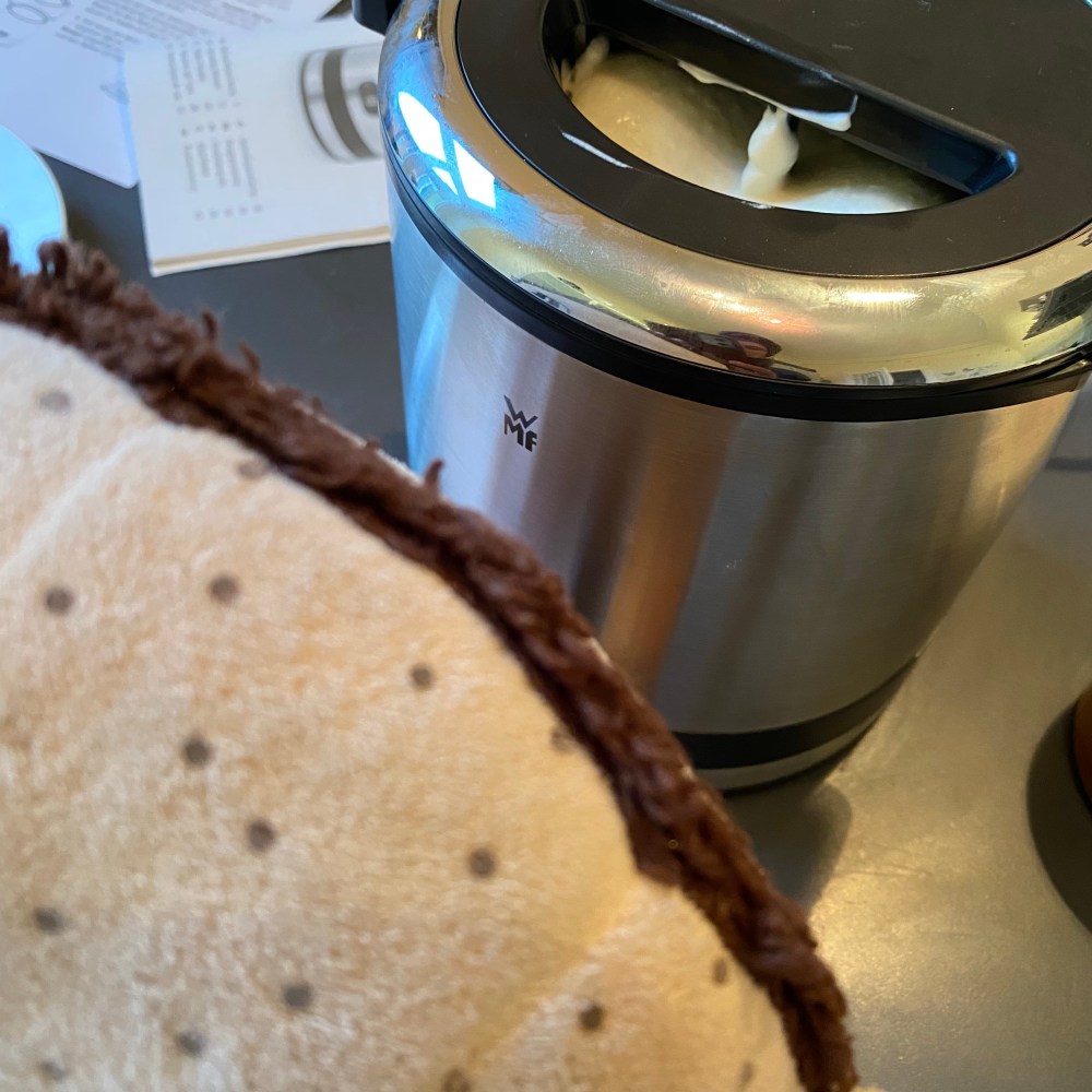 [Später auf dem Rückweg. kneteeis:] „Na super. Jetzt haben wir keine Tasche, waren nicht beim Fahrradladen und haben keinen neuen Fön. Stattdessen haben wir eine Eismaschine.“