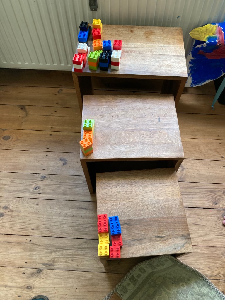 [KJ:] „Ich spiele damit noch gelegentlich. Guck mal, ich habe eine Treppe gebaut für das, was ich gerade nicht brauche!“
