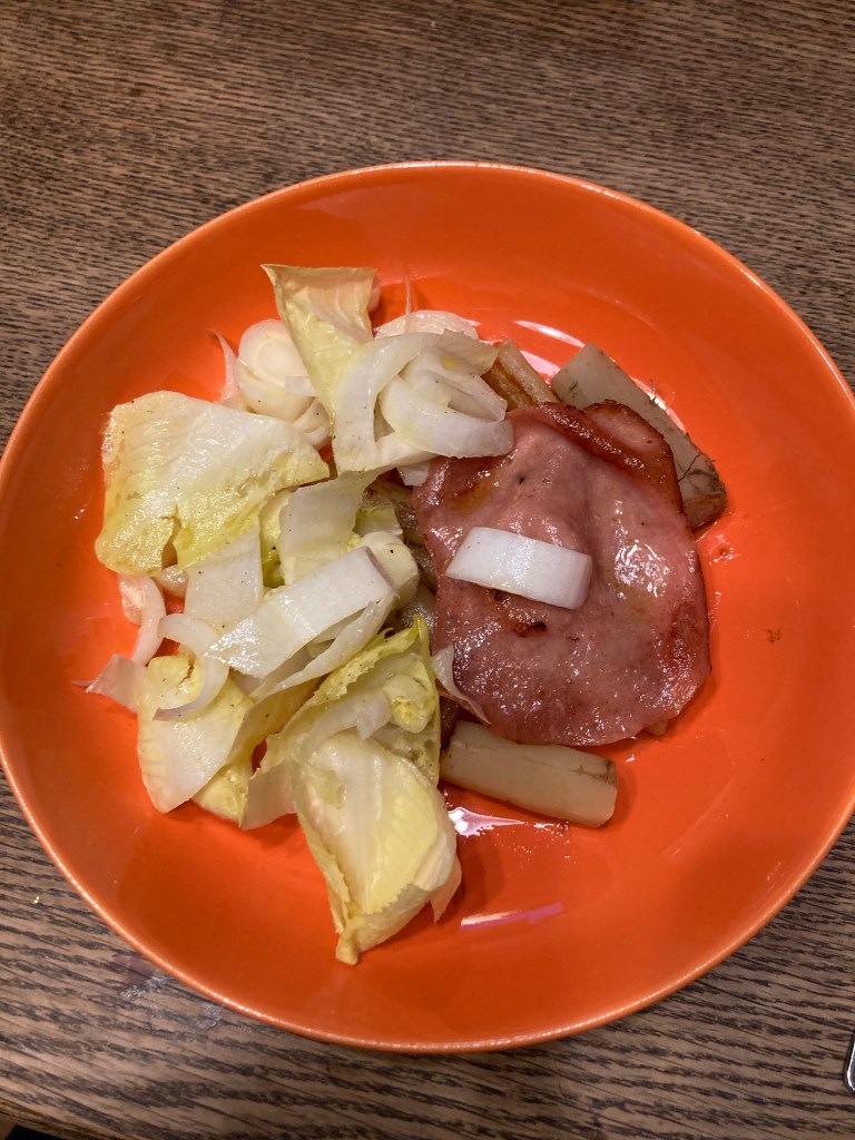 [folienstern:] „Curry und Schwarzwurzeln. Aus der Kiste.“