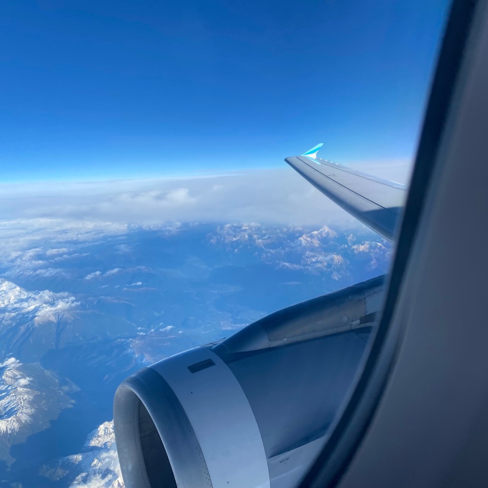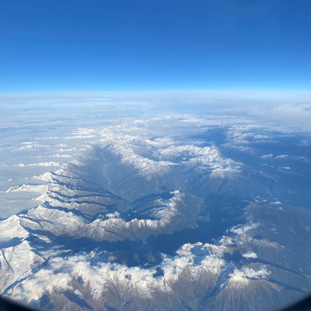 [GJ:] „Boah, man kann ganz toll die Alpen sehen! Gib‘ mir mal das Telefon!“
