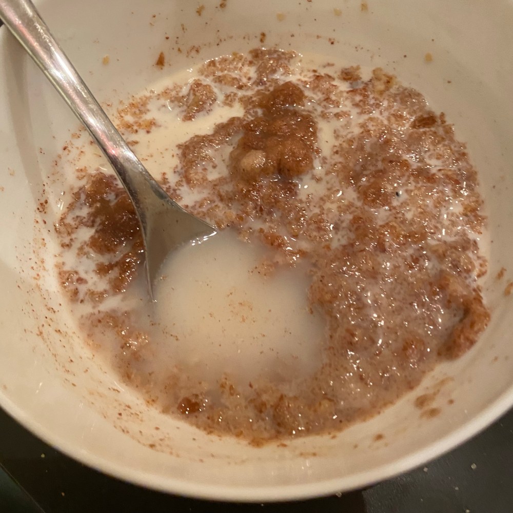 [GJ:] „Nicht so viel. Ich mache mir Weetabix, ja? Bringst Du mir noch ein Wasser?“