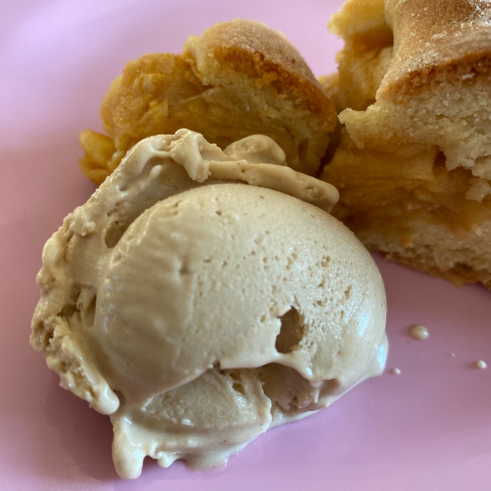 [Kurz darauf. kneteeis:] „Weißt Du was? Ich hole uns ein Stück Kuchen dazu mit dem neuen selbst gemachten Chai-Eis!“