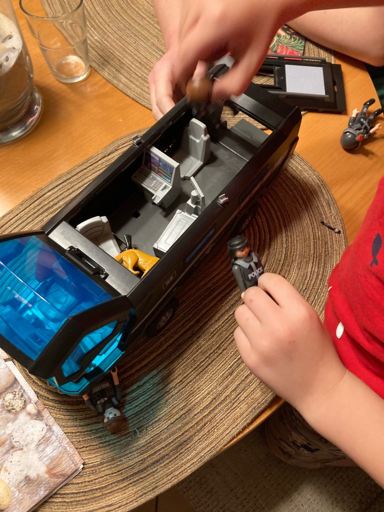 [KJ:] „Jetzt bin ich sechs!!! Jetzt möchte ich meine Geschenke auspacken! Oooh, der alte SEK-Truck! Den habe ich mir so gewünscht!“