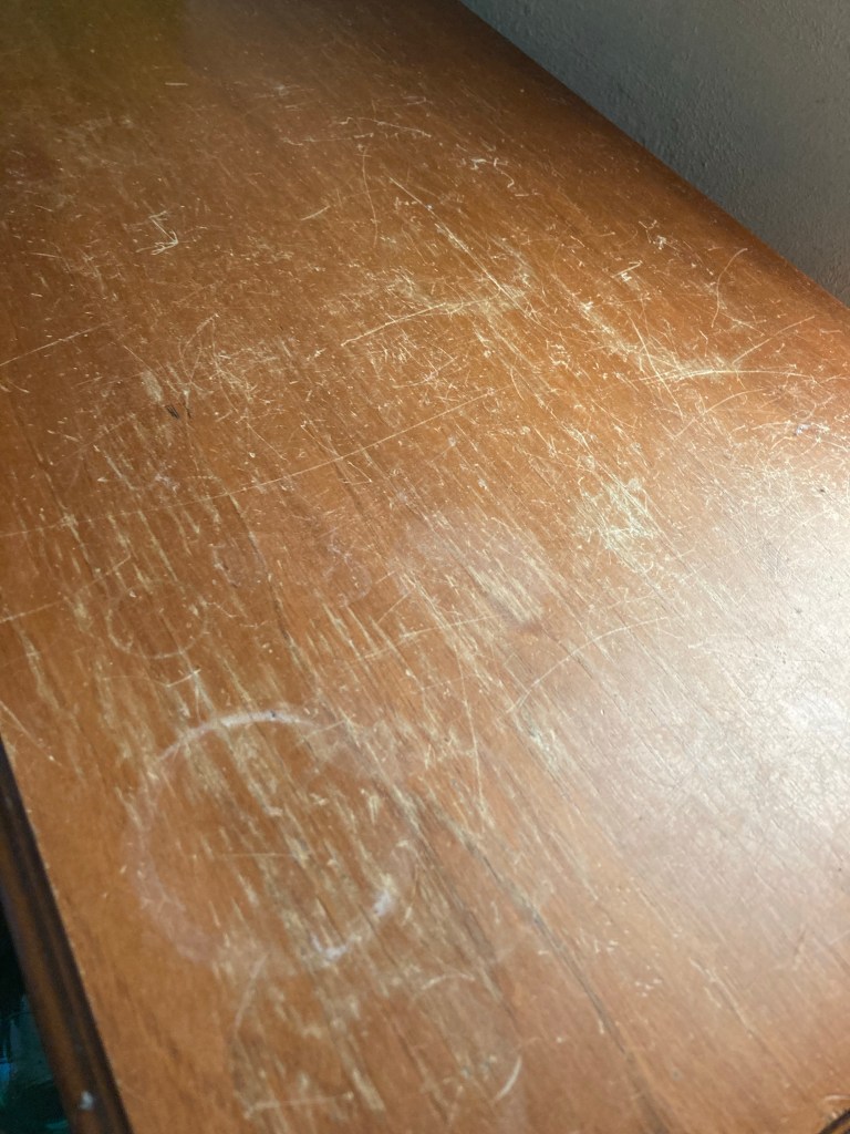 [folienstern:] „Ich hab probiert, ob ich die Wasserflecken weg kriege.“