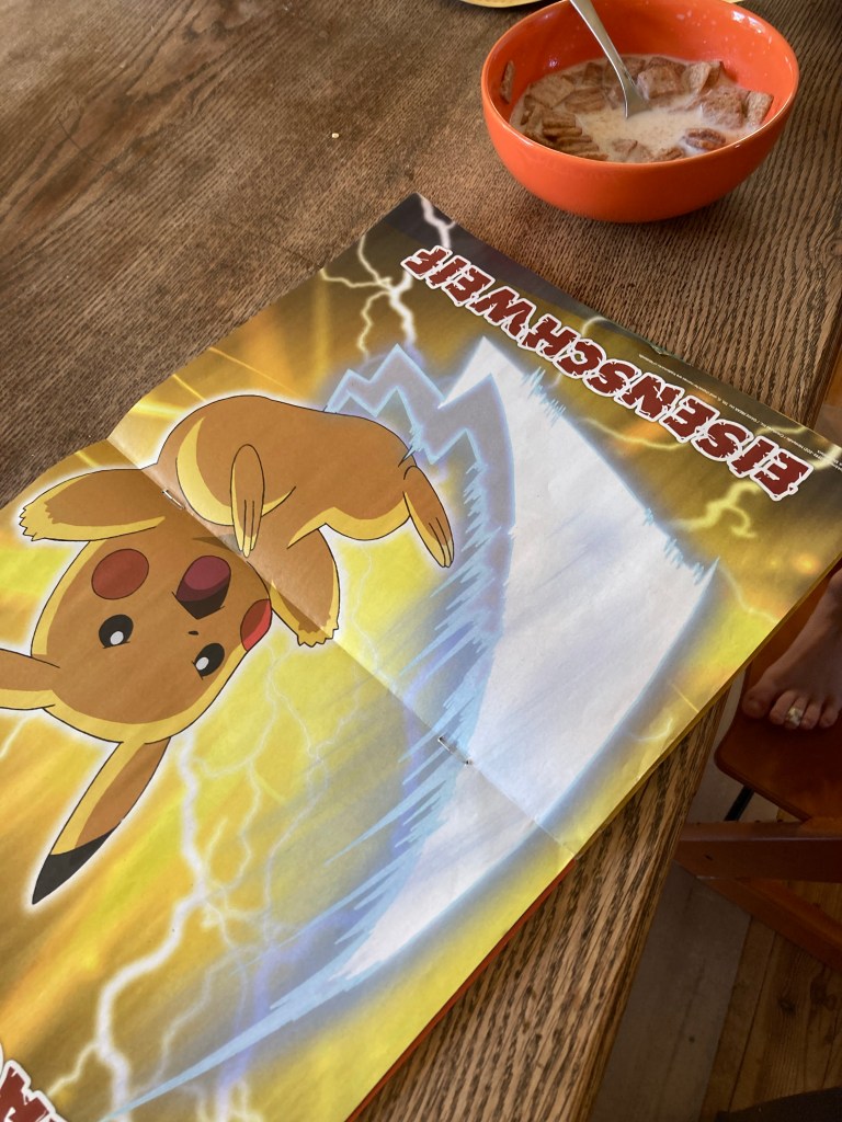 [KJ:] „Ja! Und ich hole meine Pokémon-Zeitschrift. Wegen da sind auch Pokemons drin.“