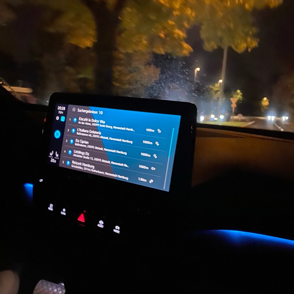 [Sprachassistent:] „Ich suche Eiscafés in der Nähe!“