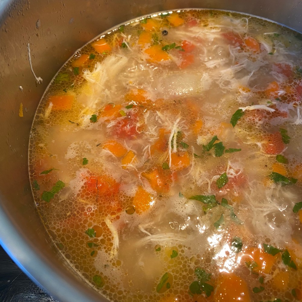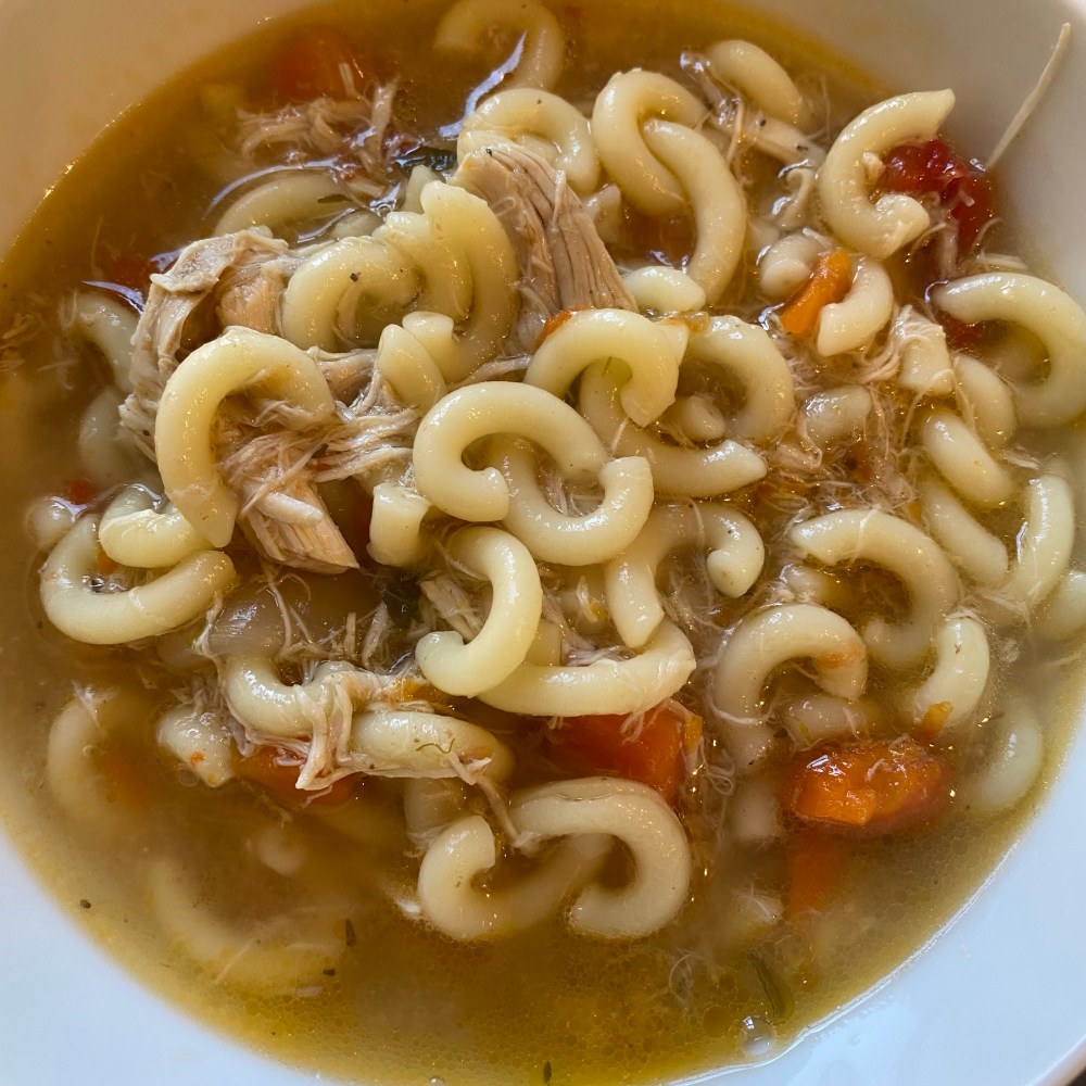 [kneteeis:] „Großer Junge! Es gibt Hühnersuppe! Du kannst ja heute Abend noch mal mit dem großen Mädchen zoomen!“