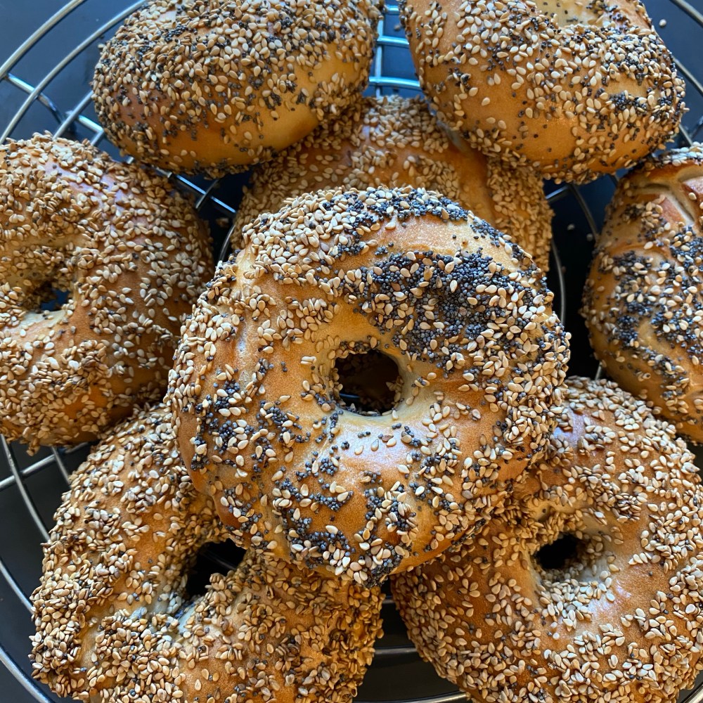 [Beim Essen. GJ:] „Oh, die Bagels sind auch schon fertig! Ich wusste gar nicht, dass das so schnell geht! Ich dachte, da muss auch erst ein Vorteig ganz lange gehen…“