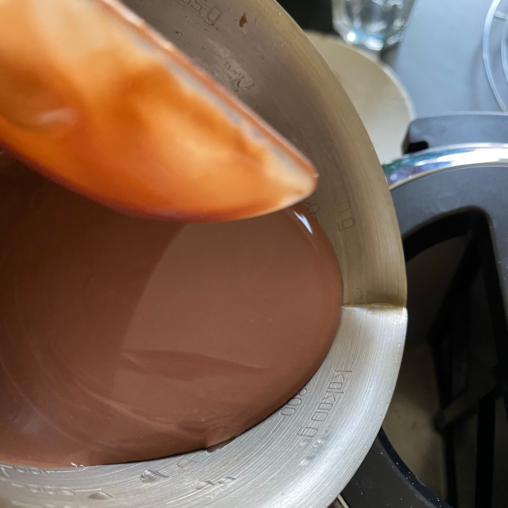 [Kurz darauf. GJ:] „Boah, guck‘ mal: Die sind noch so warm, dass das Schokotäfelchen sofort schmilzt!“