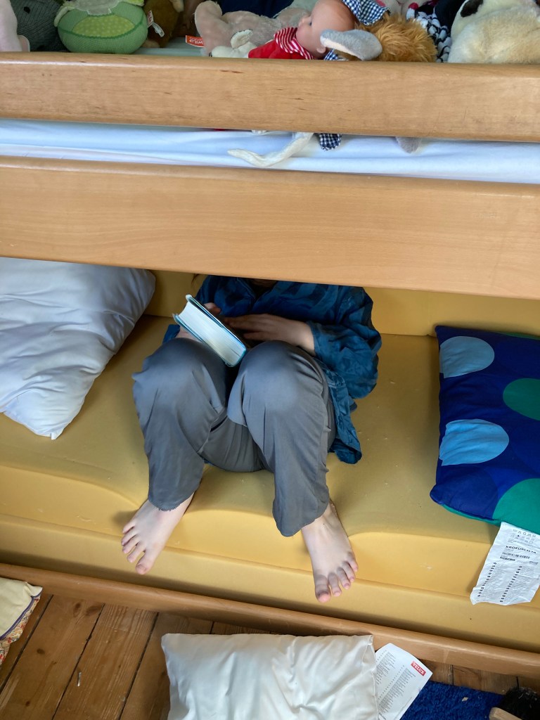 [Etwas später. KM:] „Das ist auch ohne Bezüge schon voll gemütlich! Ich les jetzt ein bisschen.“