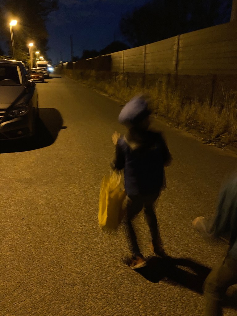 [Berlin. Sonntagmorgen. KJ:] „Jetzt geh ich gleich in den Dino-Park mit meinem Freund! Und heute Abend ist Halloween! Kann ich mit meinem Freund gehen?“