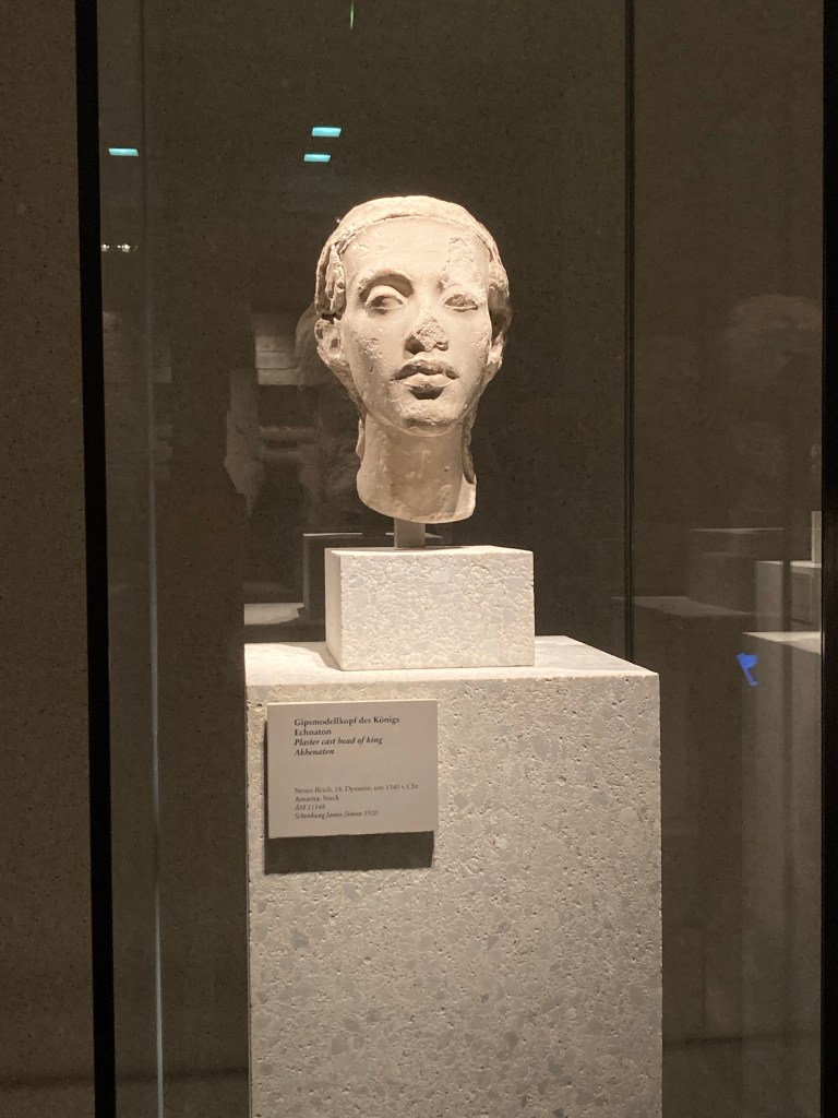 [folienstern:] „Im Neuen Museum. Da, wo die Nofretete steht. Wusstet Ihr, dass es dazu auch einen Kopf von Echnaton gibt? Der ist eigentlich auch ziemlich cool.“