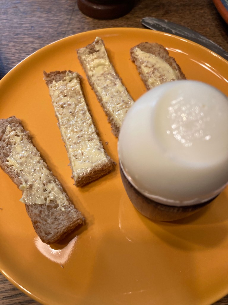 [KJ:] „Ja. Mit Toast mit Butter drauf, in Streifen geschnitten. Das ist meine Lieblingsspeise!“