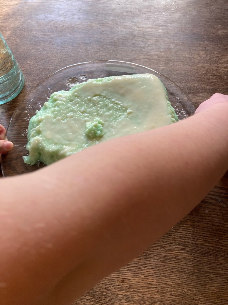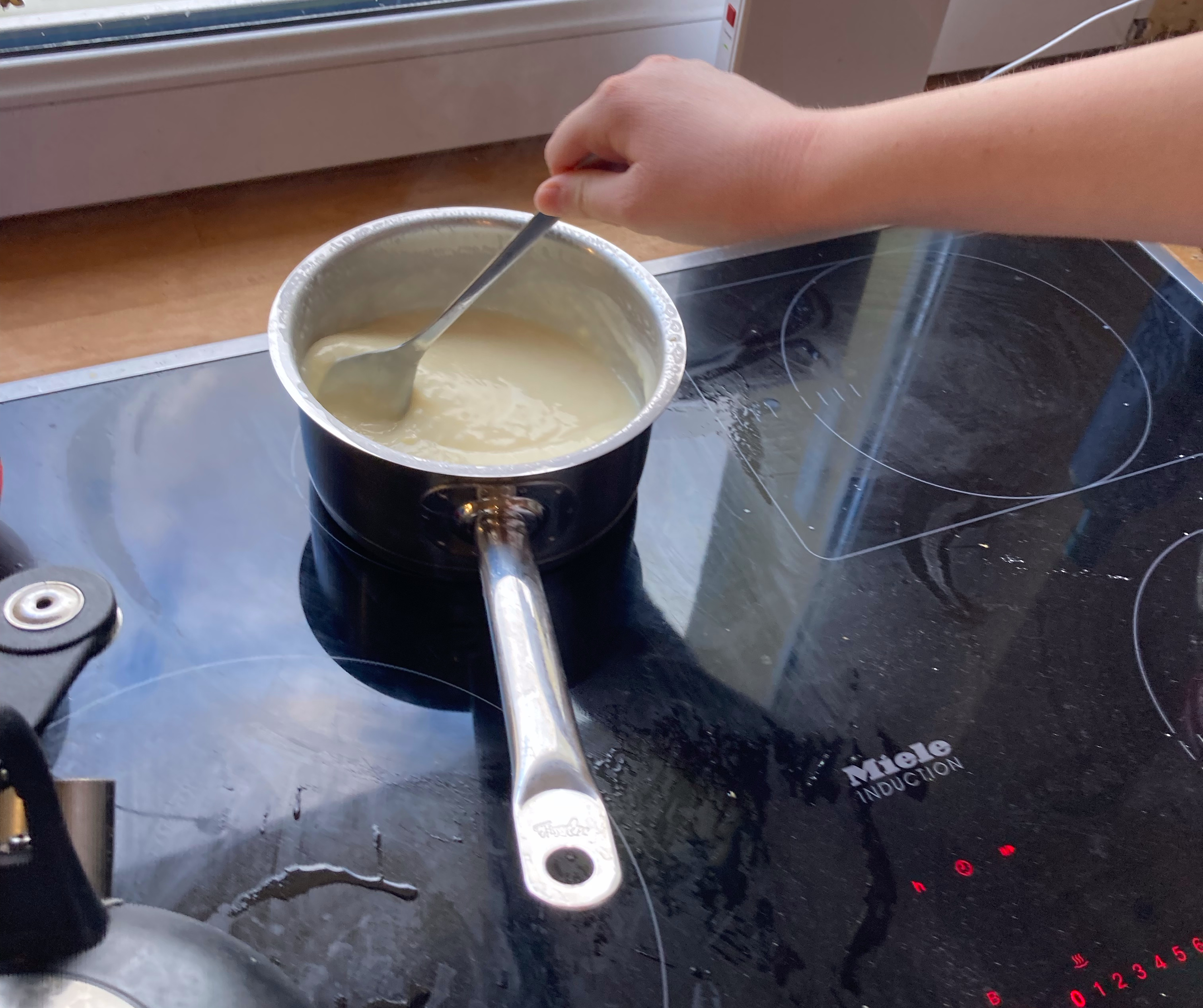 [GM:] „Vanillepudding und Wackelpudding zusammen. Das soll so marmoriert werden.“