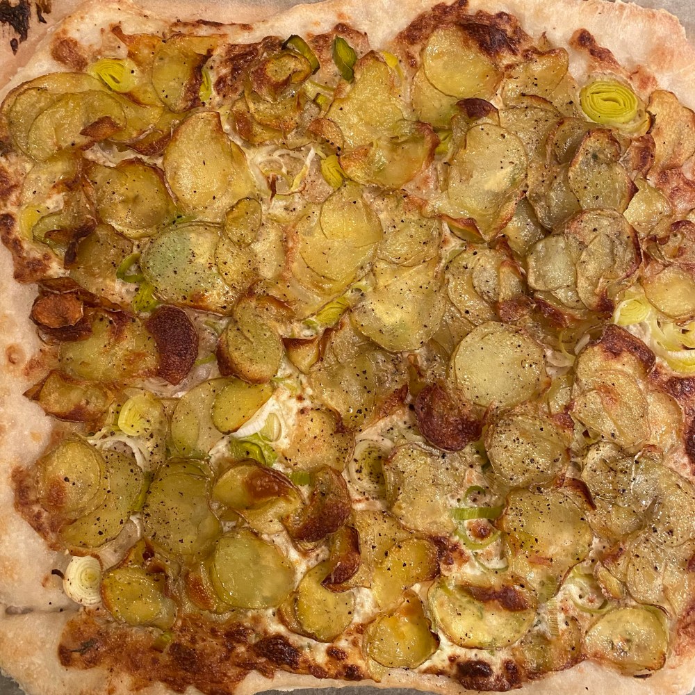 [Etwas später. Schulfreund:] „Was ist denn auf der weißen Pizza?“