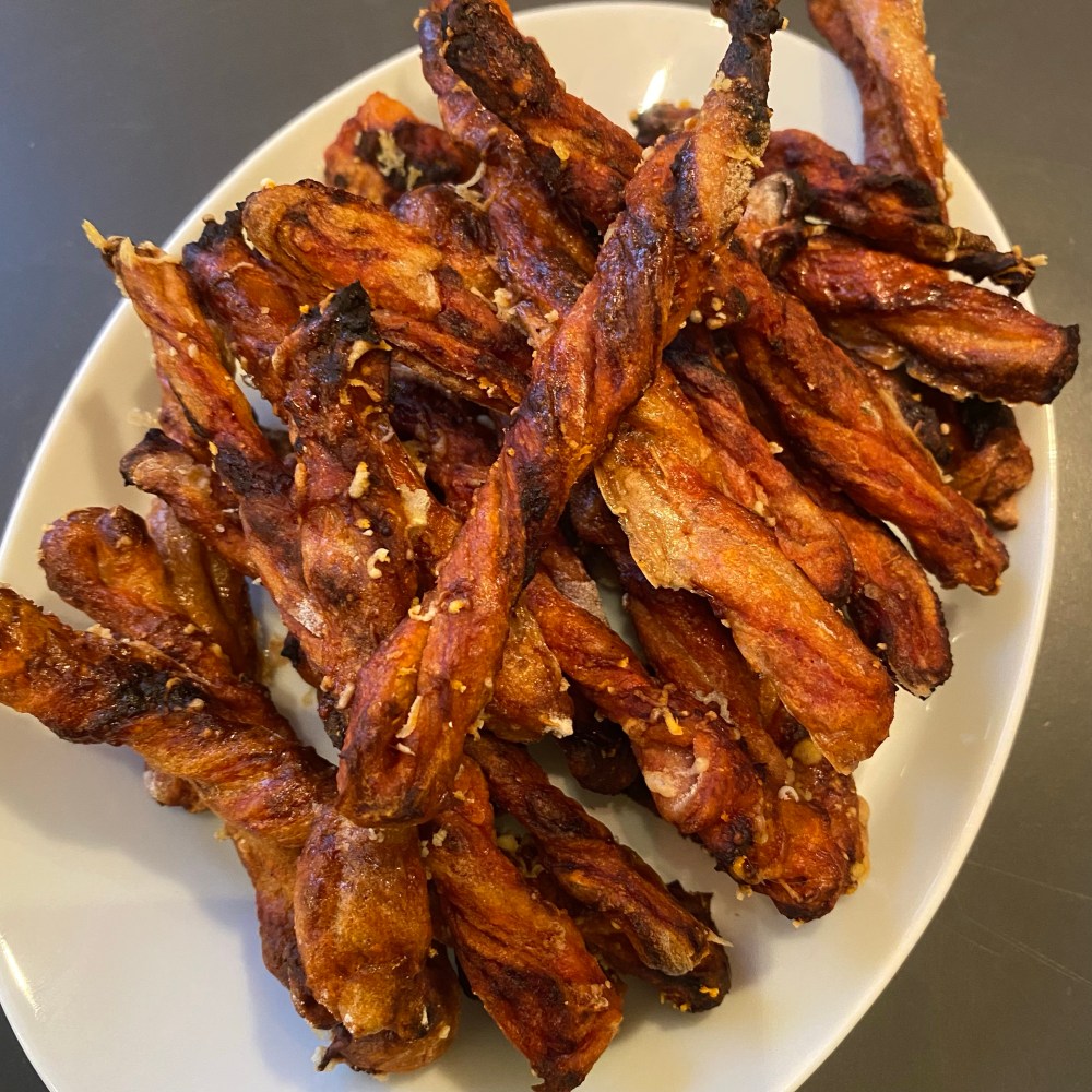 [kneteeis:] „Nein. Aber ich habe aus den Sauerteigresten Pizza-Grissini gebacken. Davon können wir etwas knabbern.“