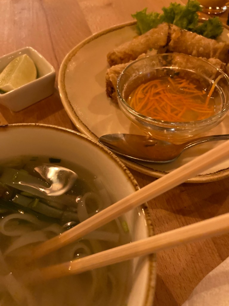 [folienstern:] „Ha, die neuen Pullover von Willer gefallen mir sehr gut. Davon ziehe ich morgen gleich einen zum Vortrag an. Jetzt esse ich noch was und gucke die Sachen für morgen nochmal an. Der Vietnamese da sieht gut aus!“