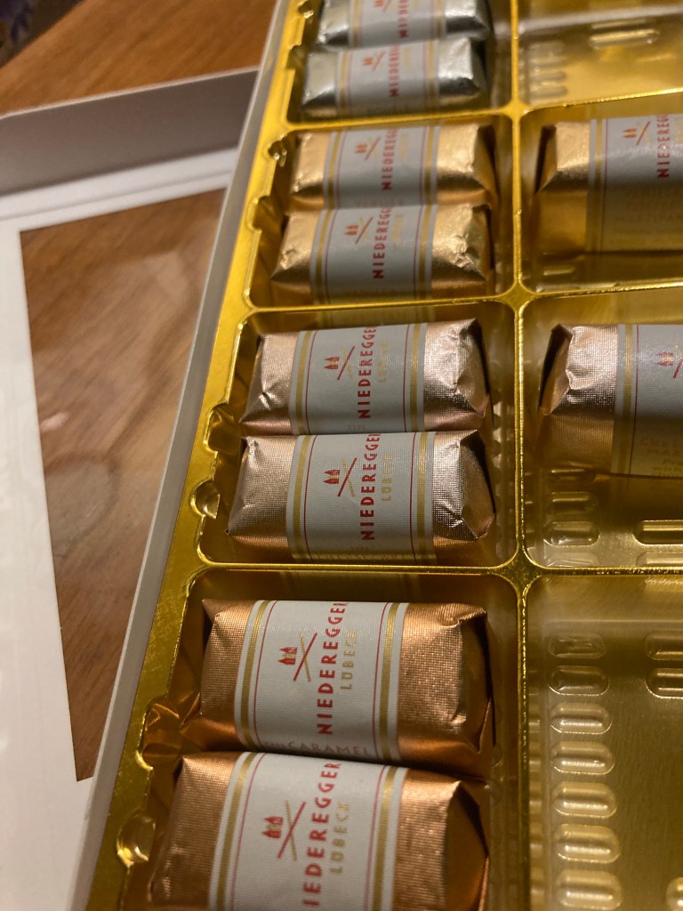 [folienstern:] „Cool. Ich glaube, ich leg mich erstmal etwas hin. Und gucke vorher, was die Veranstalter mit noch mitgegeben haben. Oh, lecker. Marzipan. Mit sehr interessanten Sorten ….“