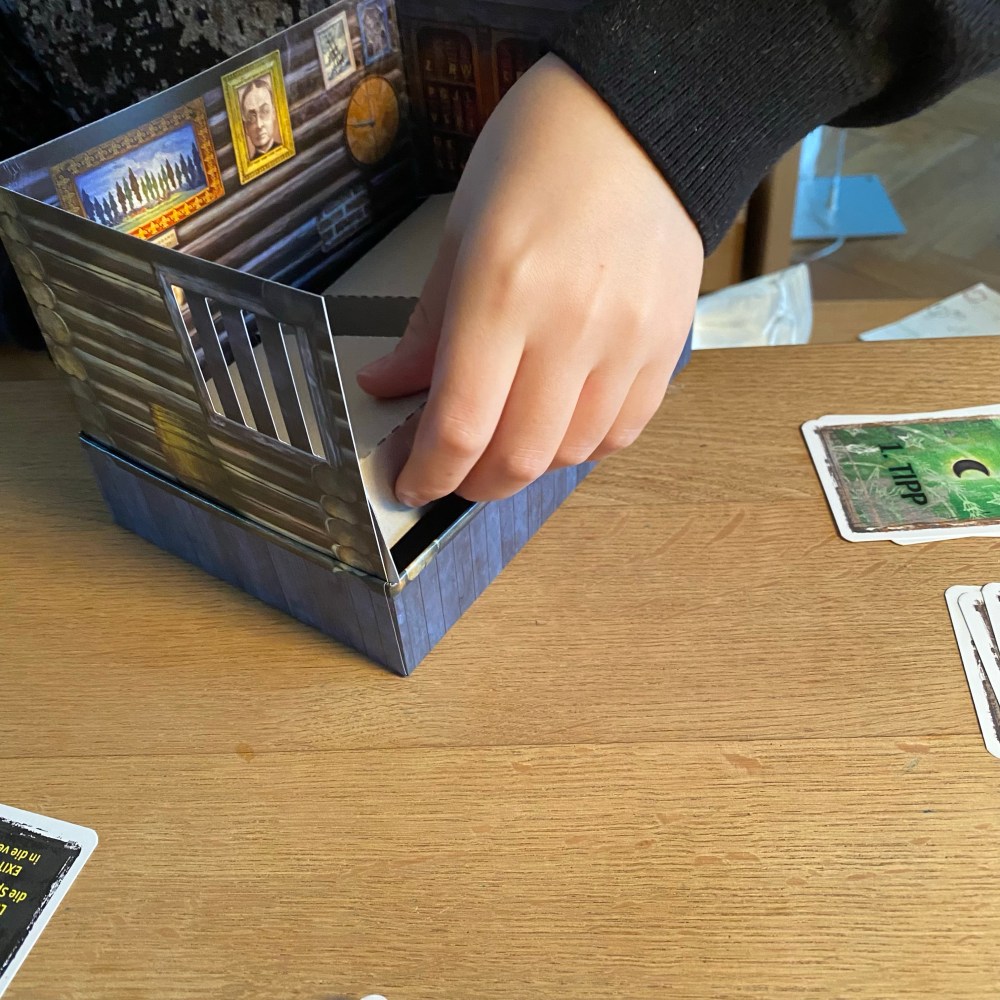 [GJ:] „Jetzt darfst Du Dir ein Spiel wünschen, das wir spielen. Auch ein EXIT-Spiel.“