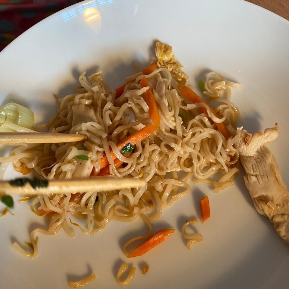 [folienstern:] „Hm, das Essen von dem neuen indischen Restaurant schmeckt super lecker!“