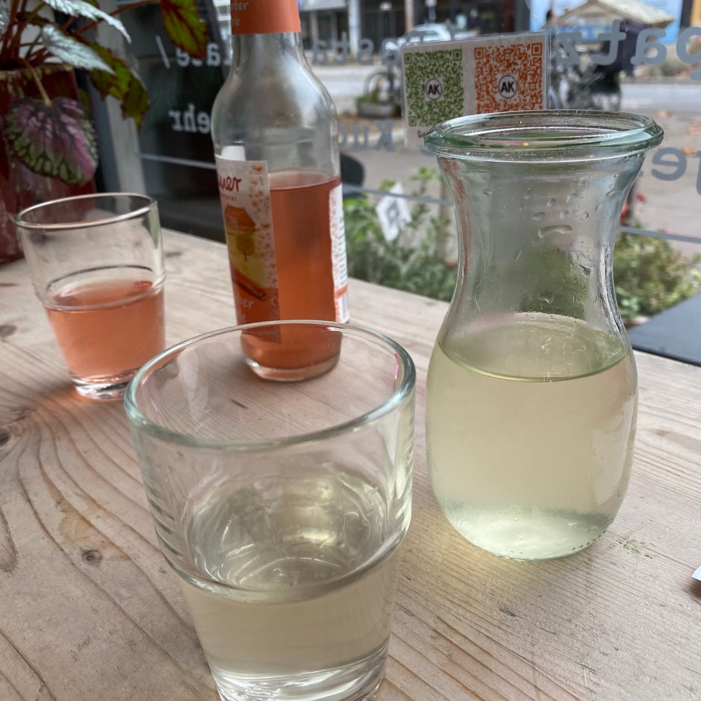 [Kurz darauf. GJ:] „Guck mal! Unsere Getränke müssten eigentlich anders herum stehen, damit sie zu den QR-Codes passen!“