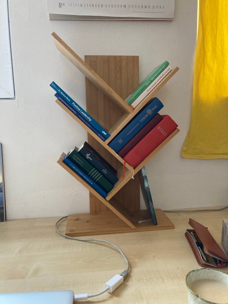[folienstern:] „Ich schraube meinen Bücherbaum zusammen.“