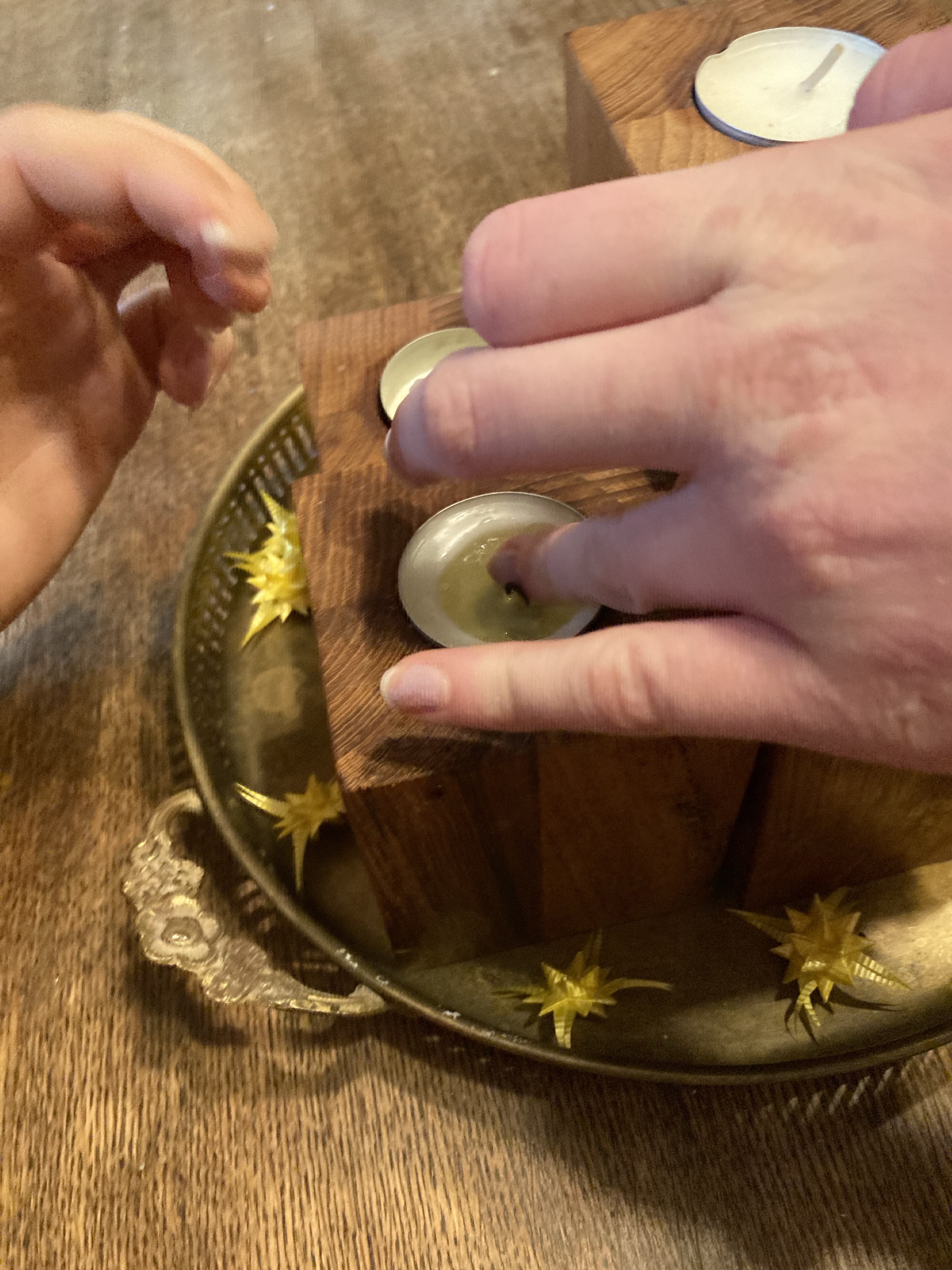 [KM:] „Es ist schon vierter Advent! Komm, wir zünden die Kerzen an! Und dann machen wir das Adventsrätsel! Wo bleibt das große Mädchen?“