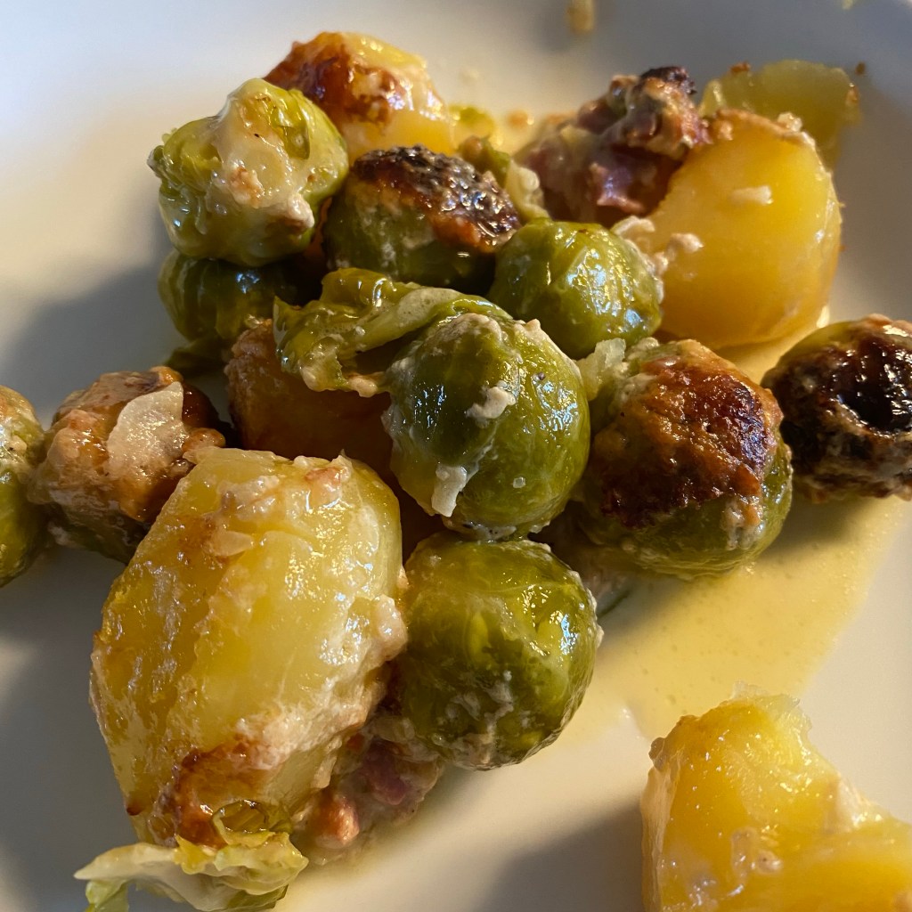 [kneteeis:] „Rosenkohl-Kartoffel-Auflauf.“