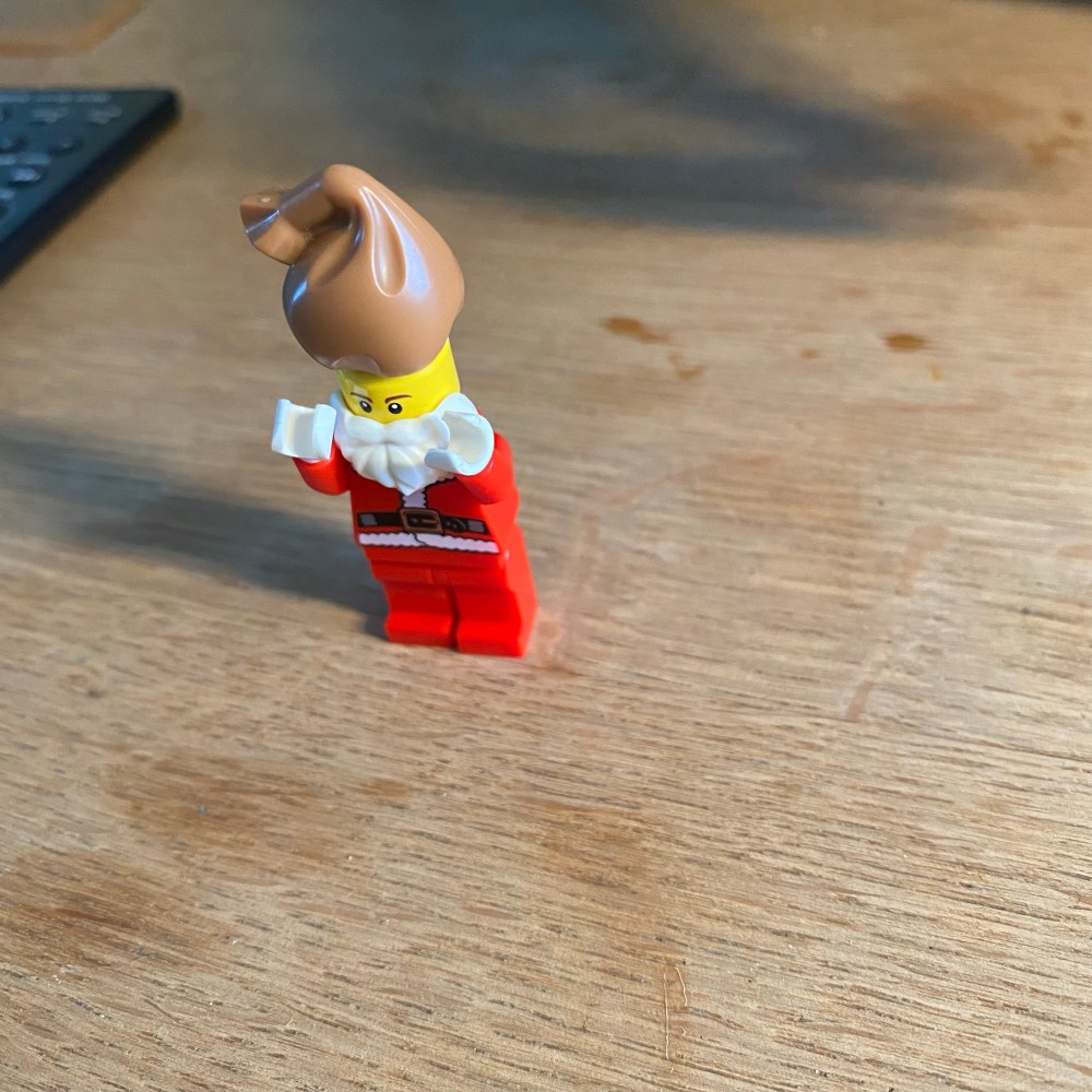 [GJ:] „Ich habe einen Plan. Ich mache jetzt als erstes die Englisch-Hausaufgabe, und dann mache ich Chinesisch. Aber vorher setze ich noch dem Weihnachtsmann den Sack auf den Kopf. Dann sieht er aus wie ein indischer Guru.“