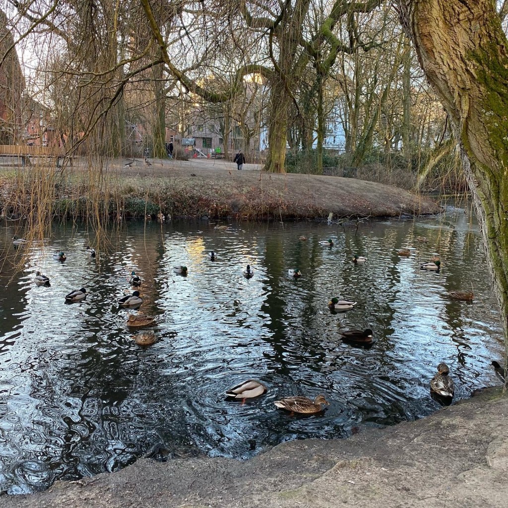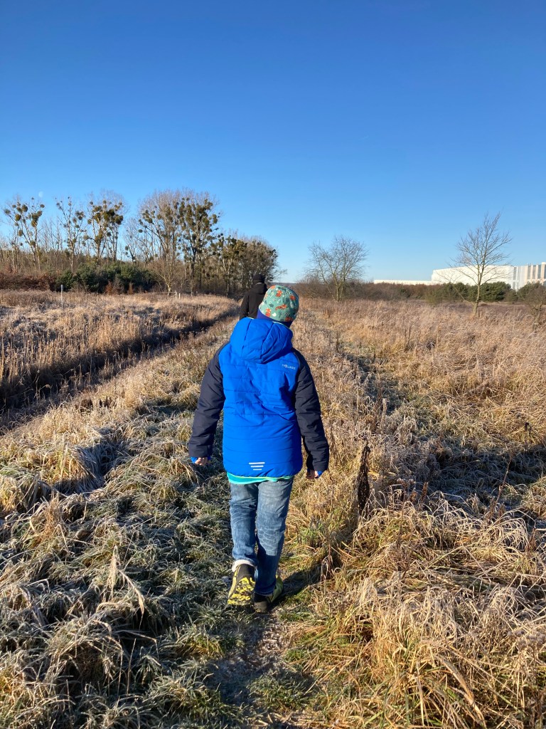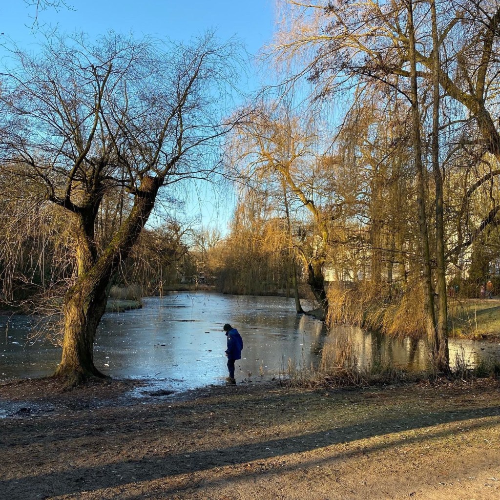 [Etwas später im Park. GJ:] „Da ist ja Eis auf dem Teich! Ich gucke mal…“