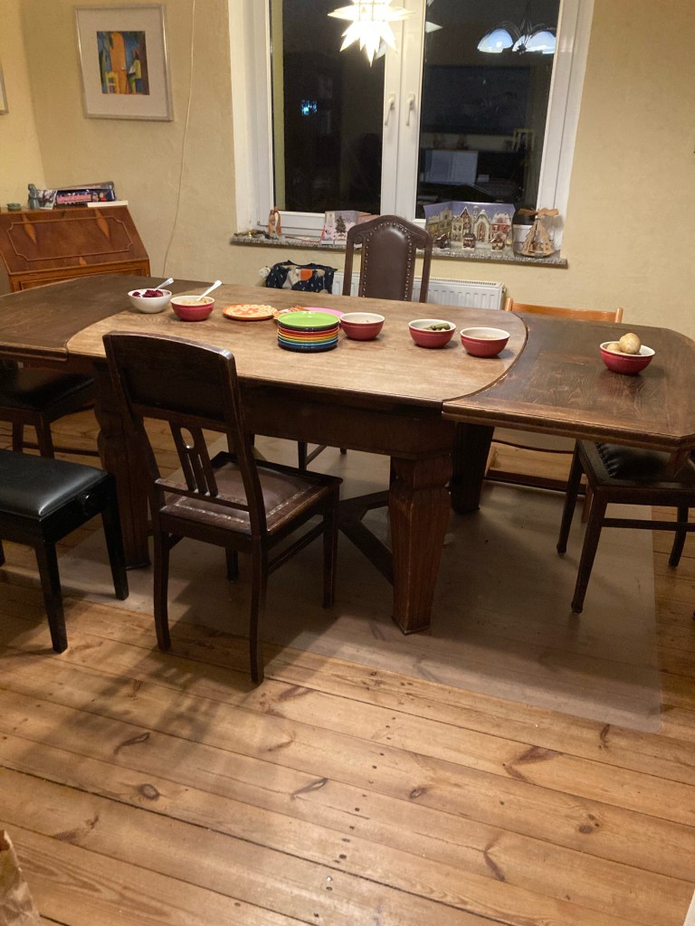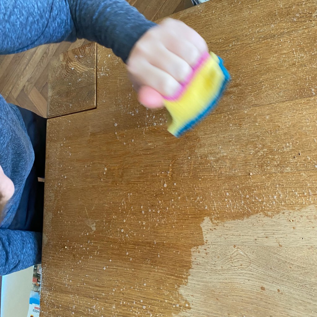 [Kurz darauf. kneteeis:] „Wischst Du bitte noch den Tisch ab?“