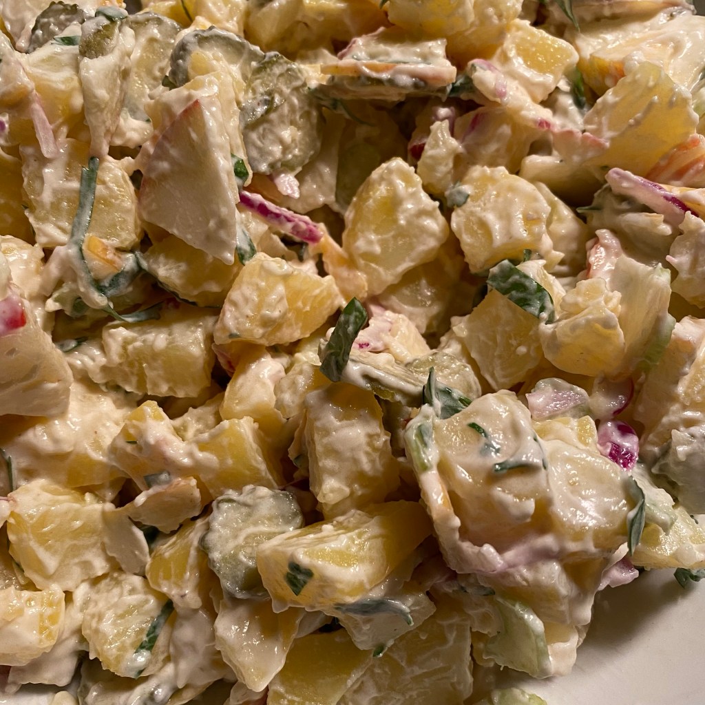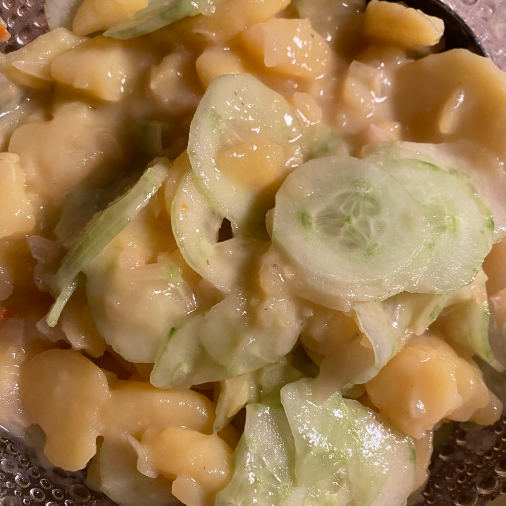 [GJ:] „Der helle Kartoffelsalat ist lecker! Aber den anderen macht der Berliner Vater viel besser!“