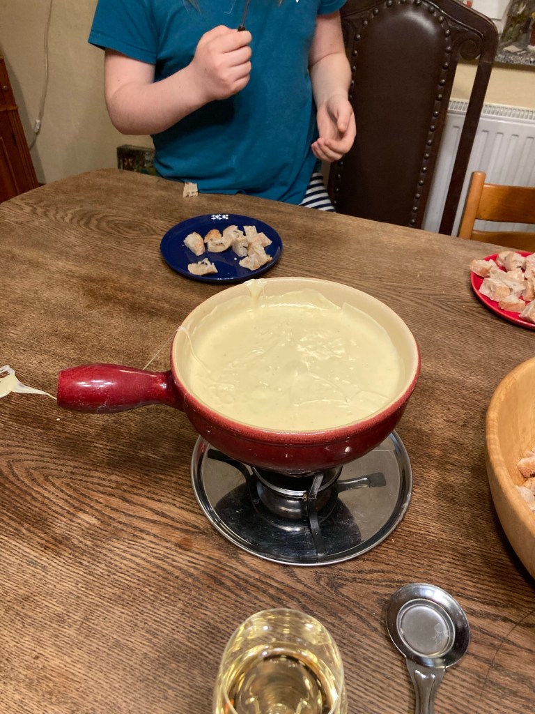 [KM:] „Oooh, gleich gib’s Fondue!“