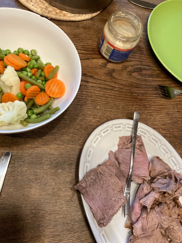 [Vater:] „Wenn man Fleischstücke so in Brühe oder Fett gart. Auch lecker.“