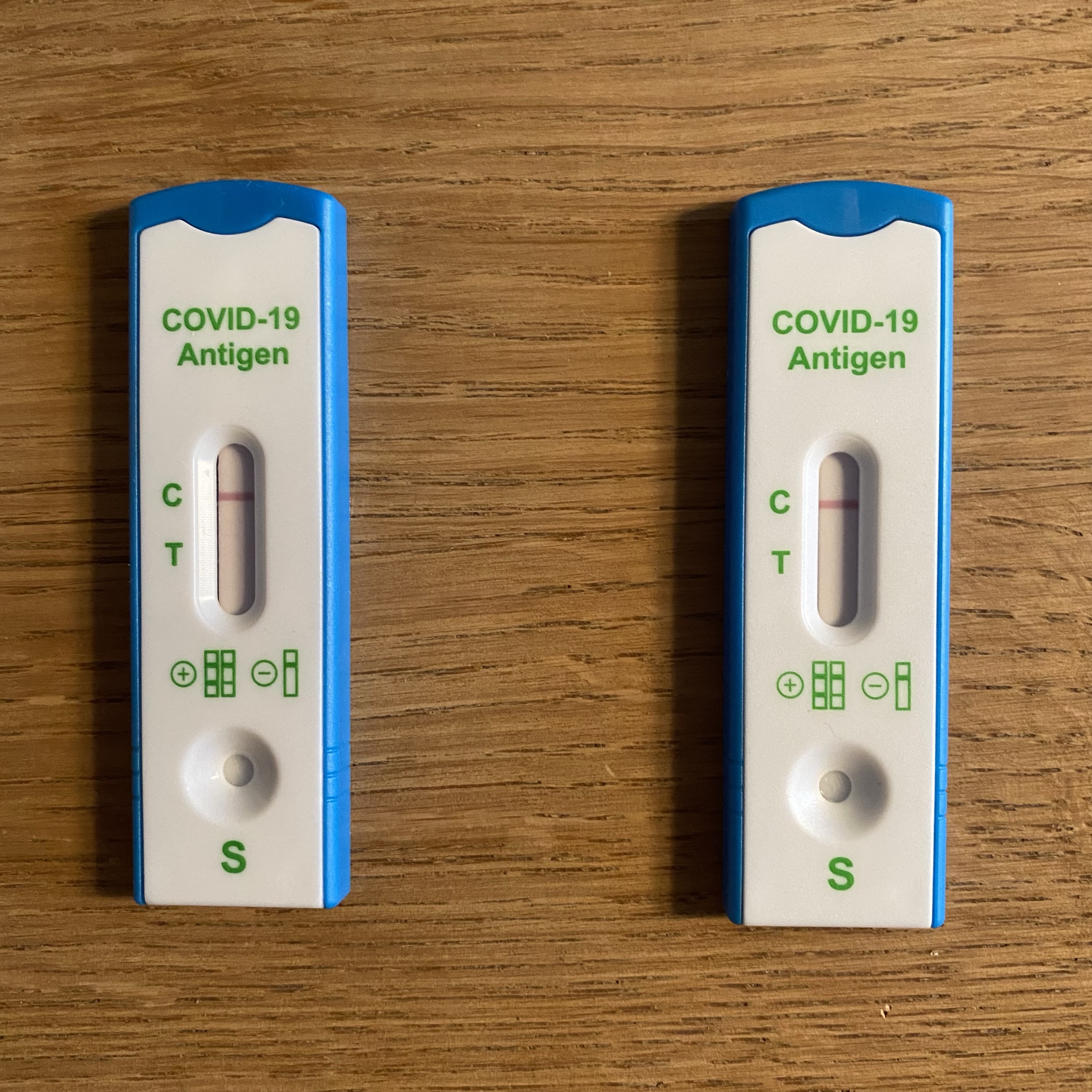 [kneteeis:] „So, beide Selbsttests negativ. Dann können wir los zu der Impfaktion, bei der wir heute helfen.“