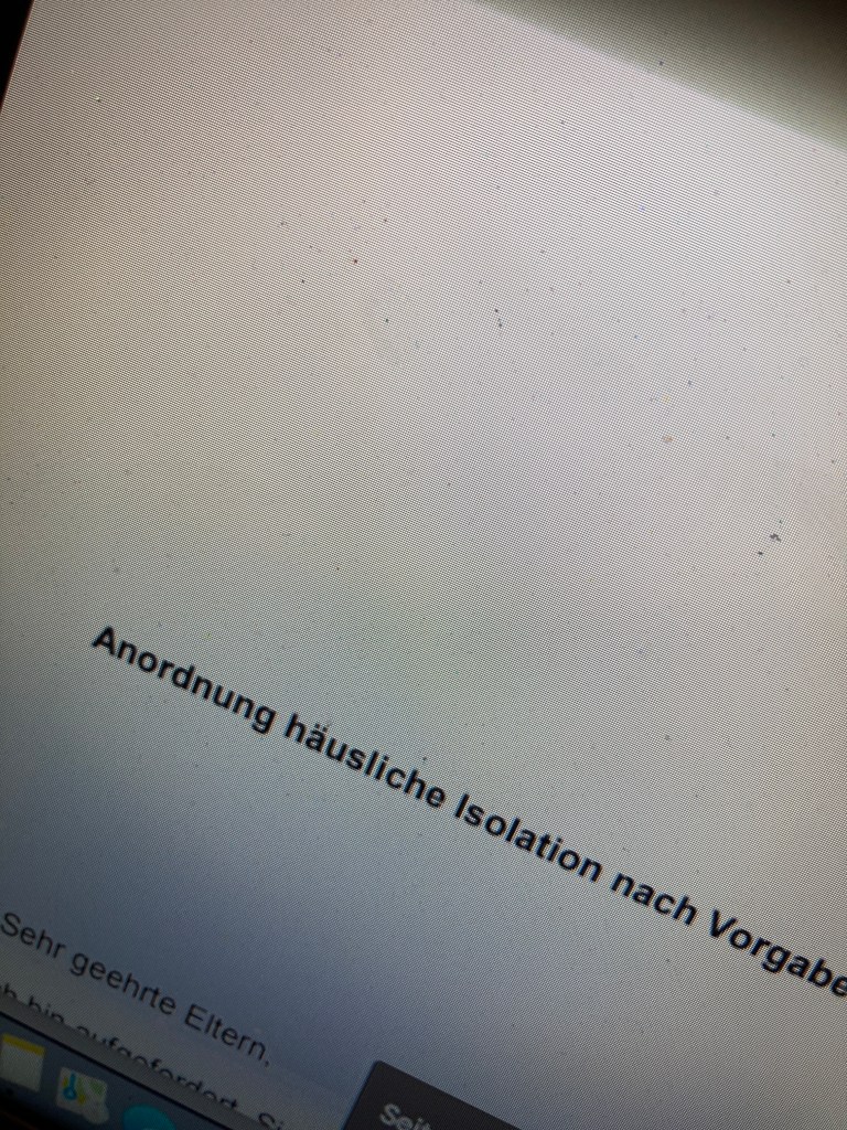 [folienstern:] „Nee, nicht ernsthaft, oder? Das kleine Mädchen muss in Quarantäne, als K1 einer Omikronvariante in der Schule.“