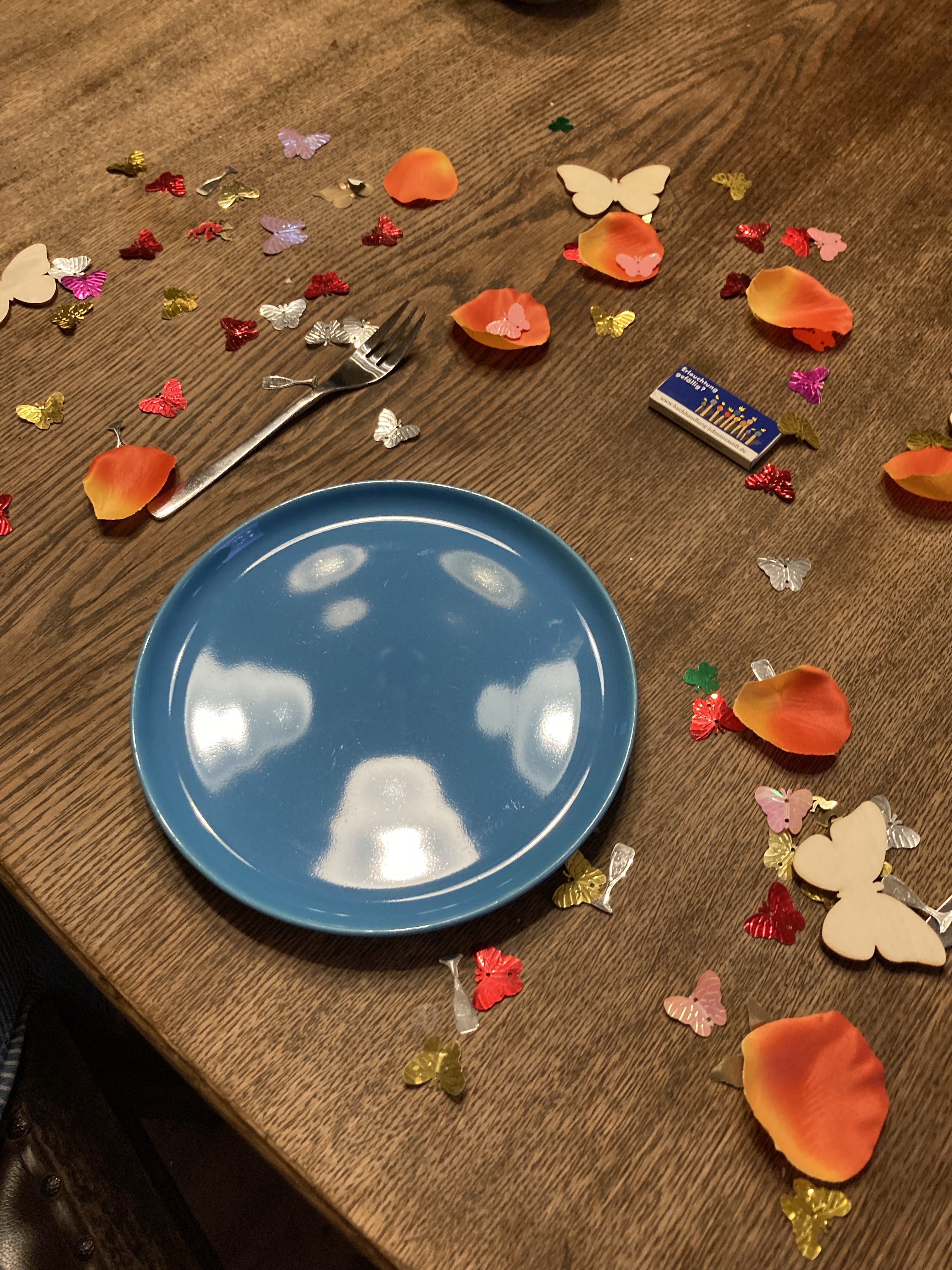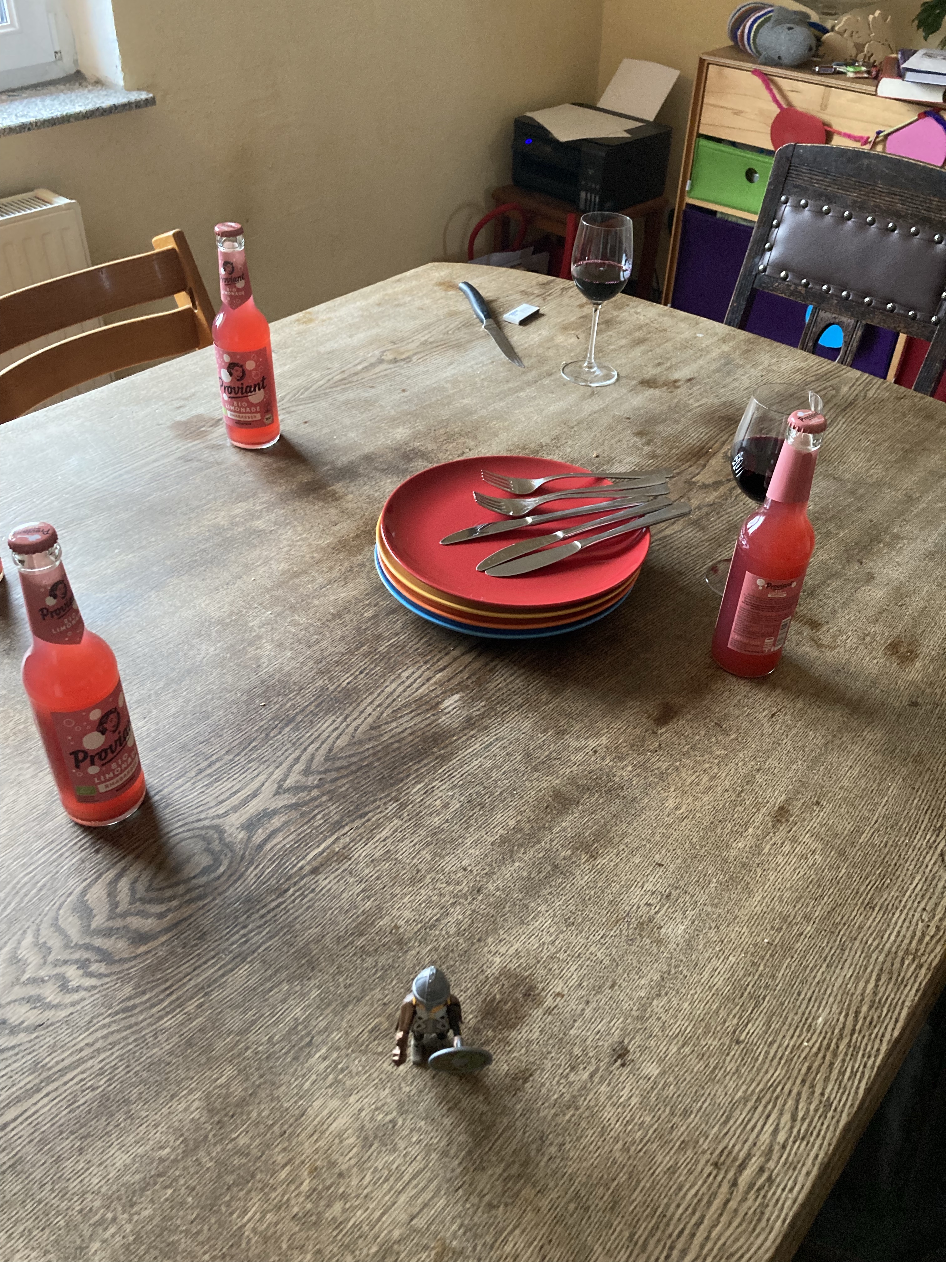 [KM:] „Und jetzt Geburtagsfrühstück! Ich möchte von der 1 und von der 0. Und die Konfetti an meinem Platz. Aber sind die nicht eigentlich umweltschädlich?“