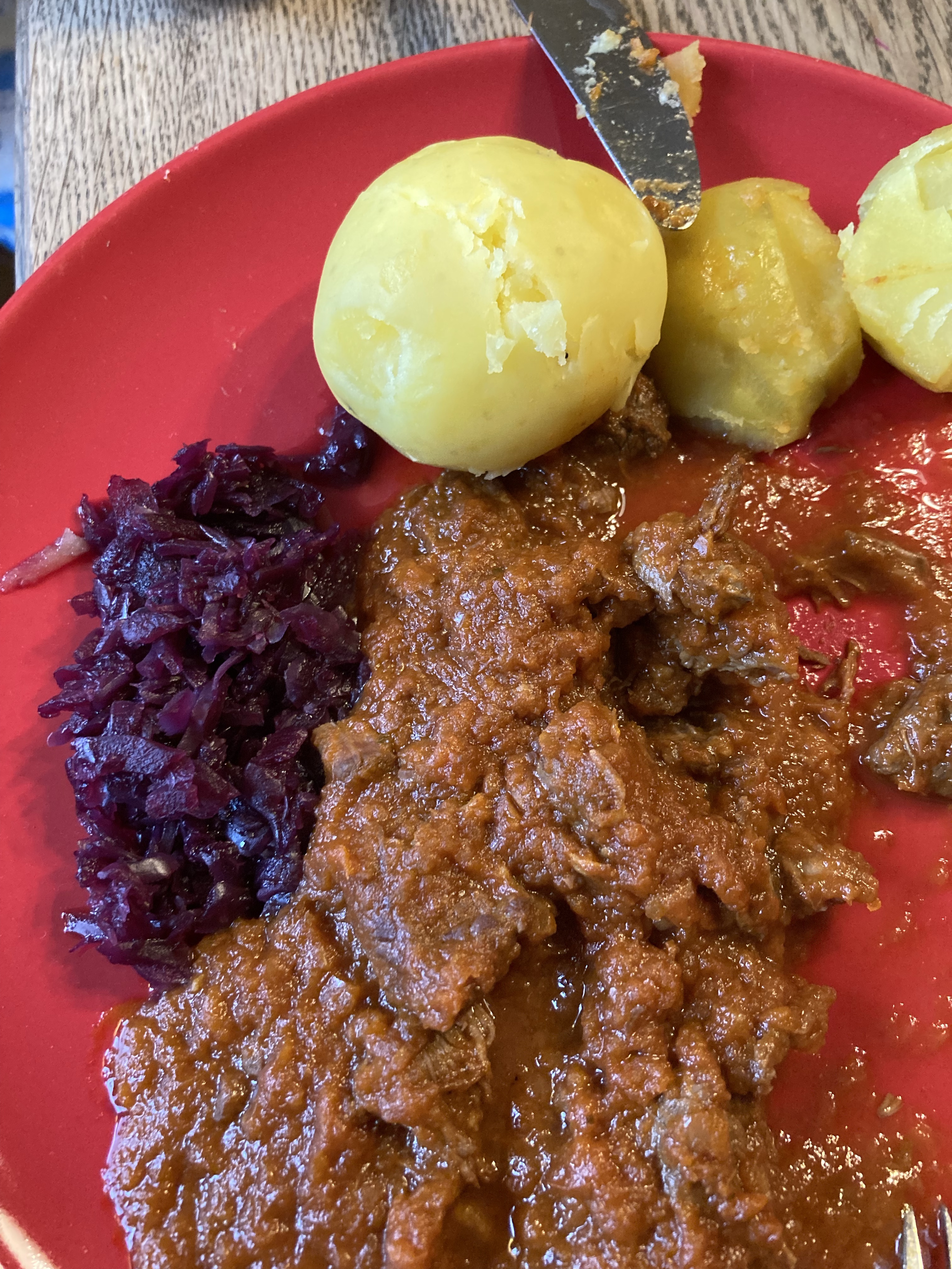 [Vater:] „Hmm, das Gulasch von den Grünen Bauern ist sehr lecker geworden.“