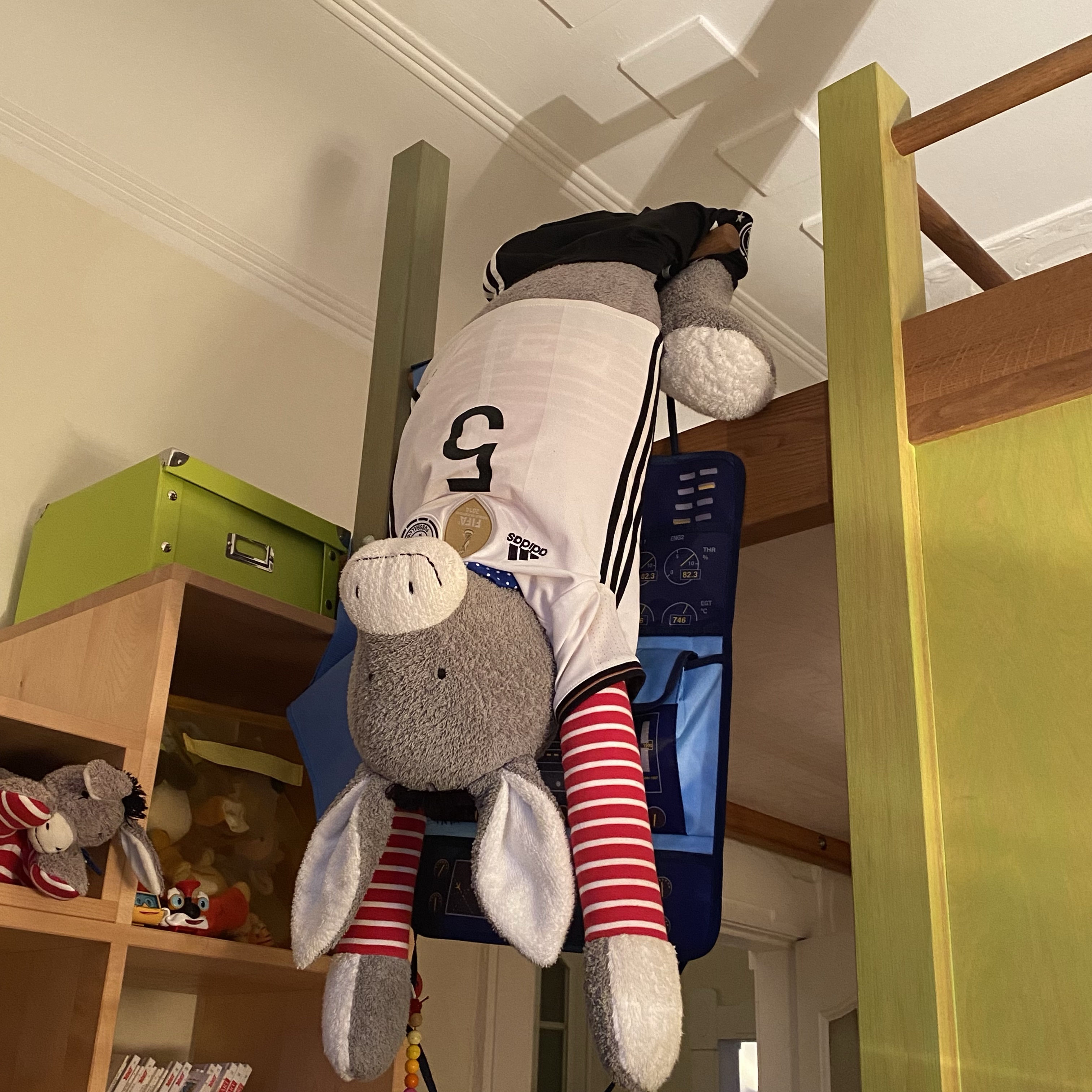 [Etwas später. GJ:] „Mami! Kannst Du mir helfen? Ich stecke im Bettbezug und brauche jetzt die Bettdecke!“
