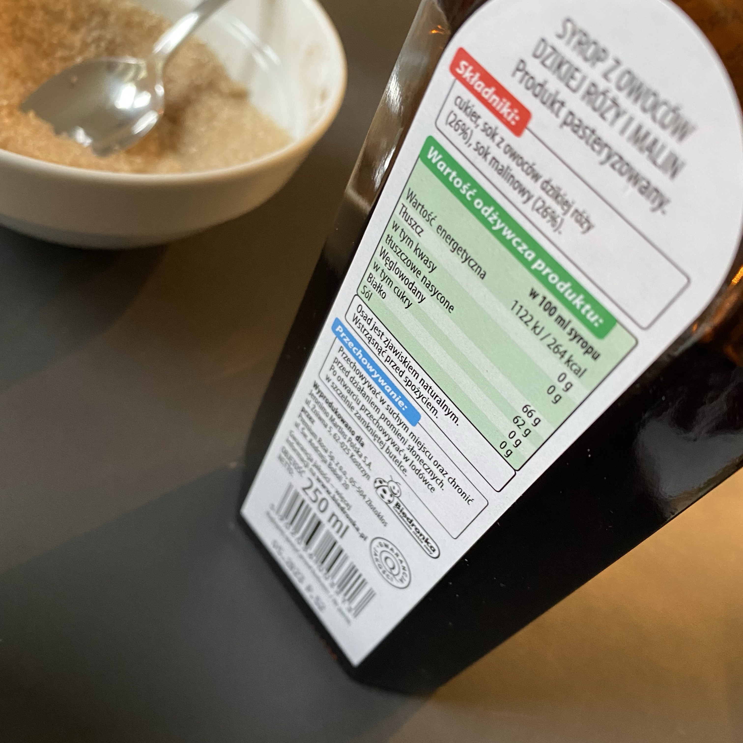 [Kurz darauf. GJ:] „Ha! Guck mal: Das hier muss ‚Zutaten‘ auf Polnisch heißen. Und die Sachen drunter vergleiche ich mal mit dem, was auf der Milchpackung steht. Das hier müsste ‚Kohlenhydrate‘ sein, und ‚w tym cukry‘ heißt dann: ‚davon Zucker‘. Das ist toll! Das ist ein Übersetzungssirup!“