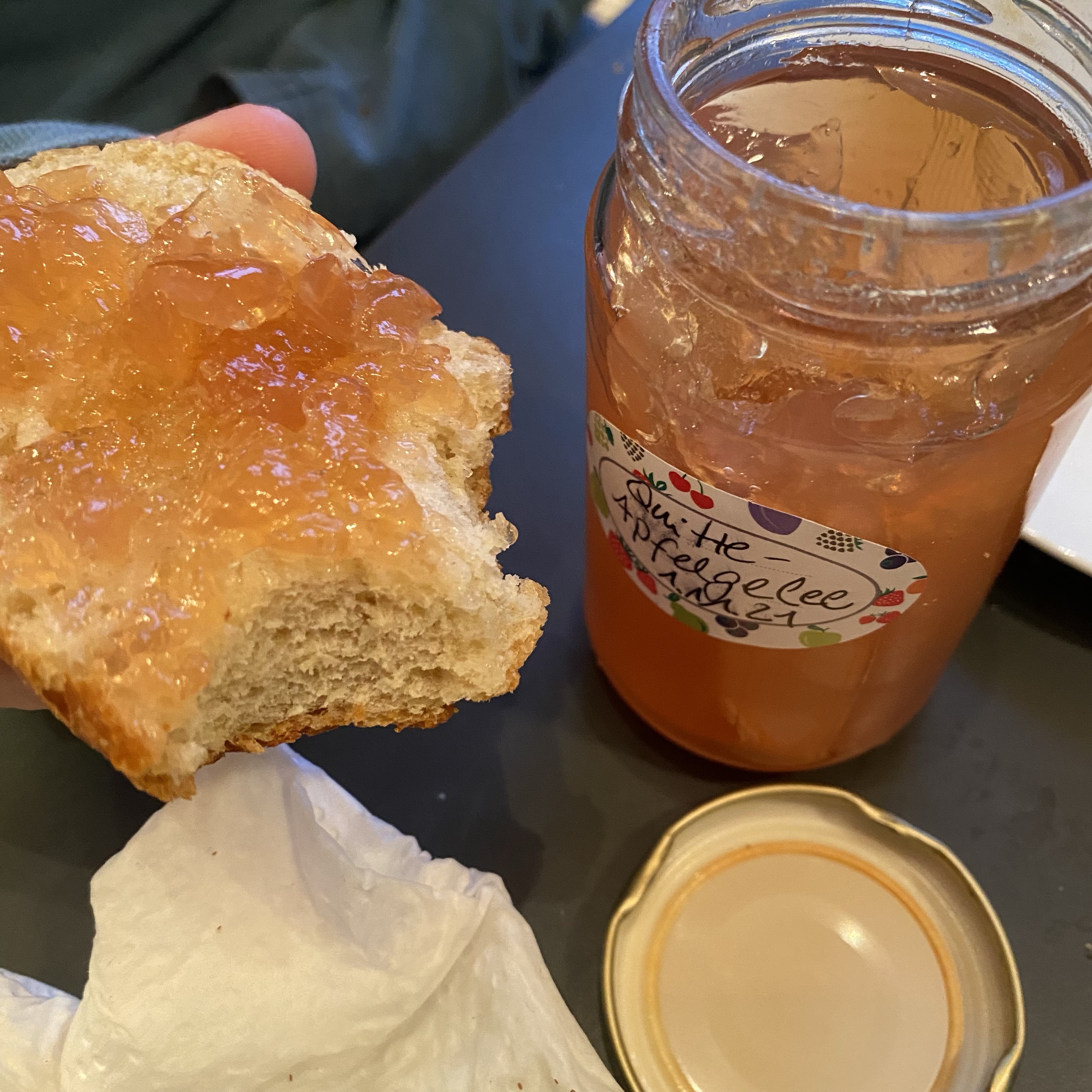 [GJ:] „Au ja! Ich nehme ein Brötchen mit Quittengelee!“