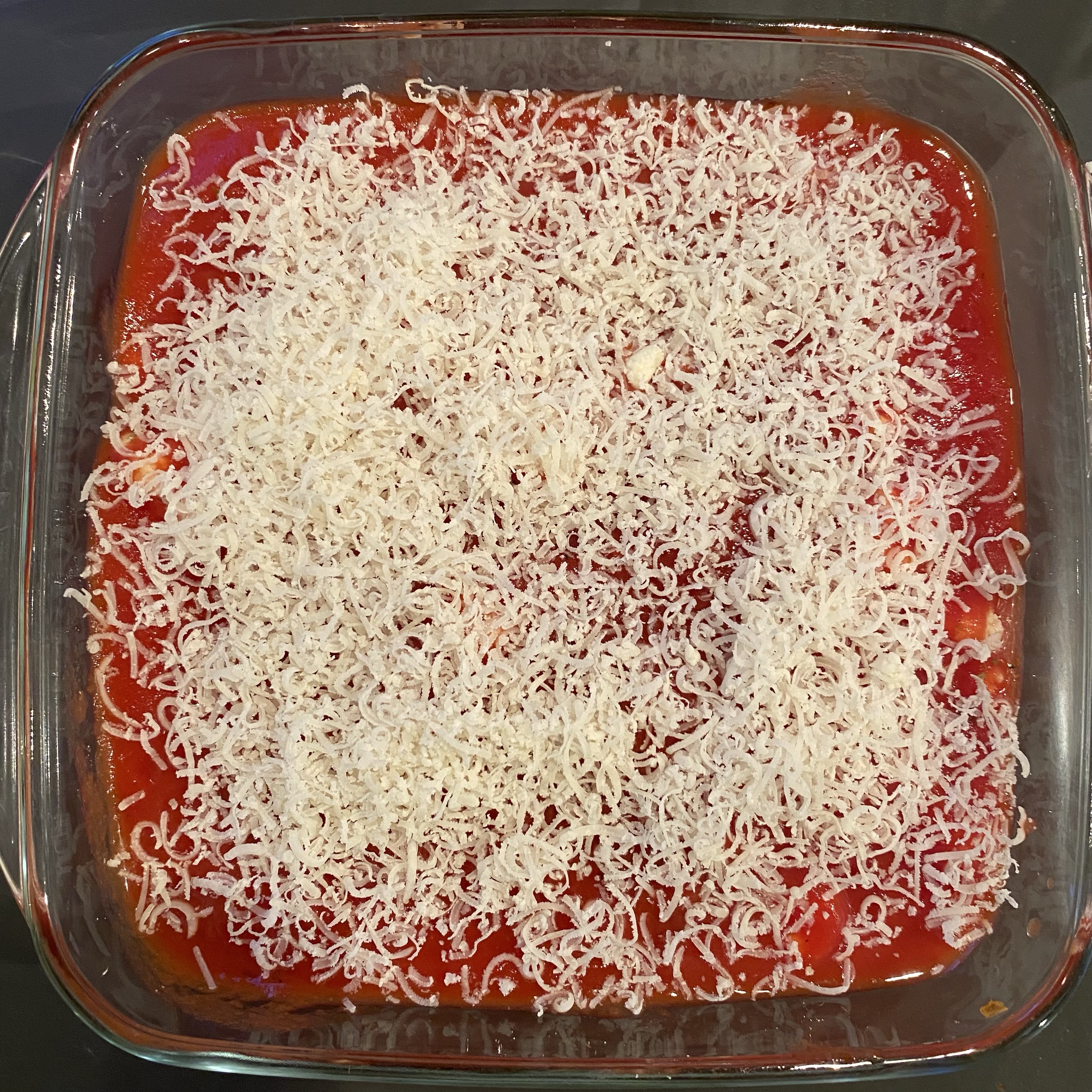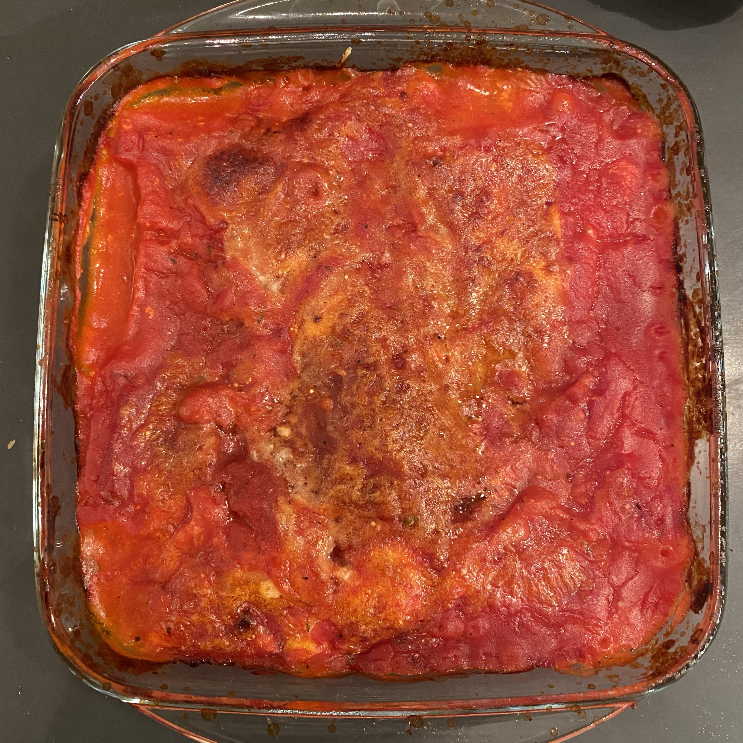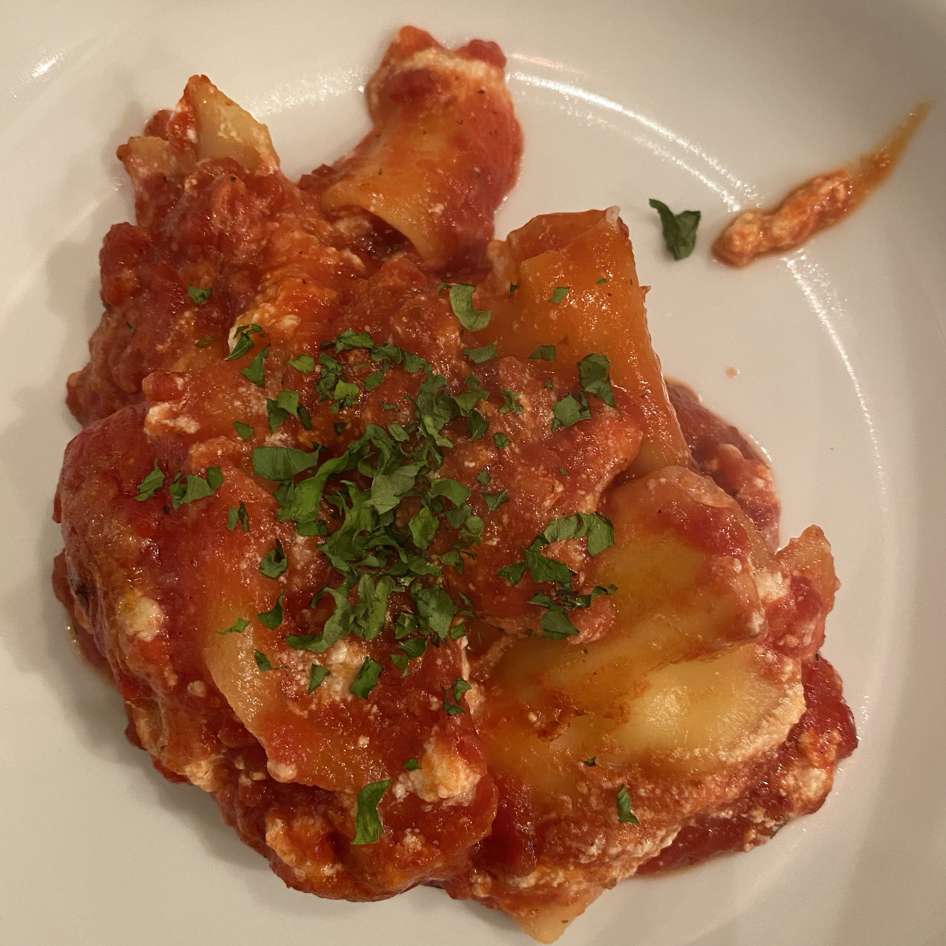 [kneteeis:] „Ha! Ich habe eine Idee! Ich fülle die restliche Füllung von den Tortellini, die der große Junge letzte Woche gemacht hat, in Cannelloni und überbacke die mit Tomatensauce!“