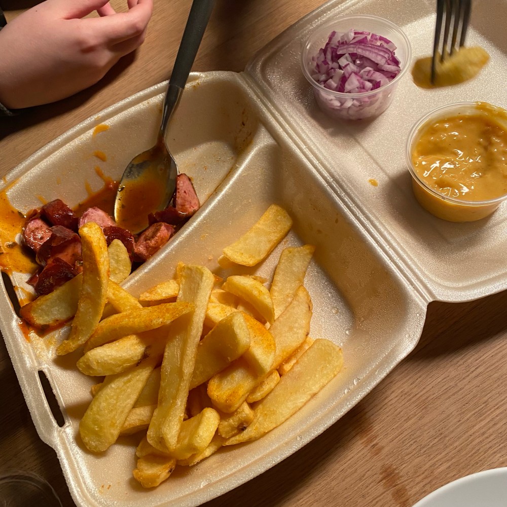 [Deutlich später. GJ:] „Die Pommes sind wirklich sehr lecker! Das müssen wir uns merken!“