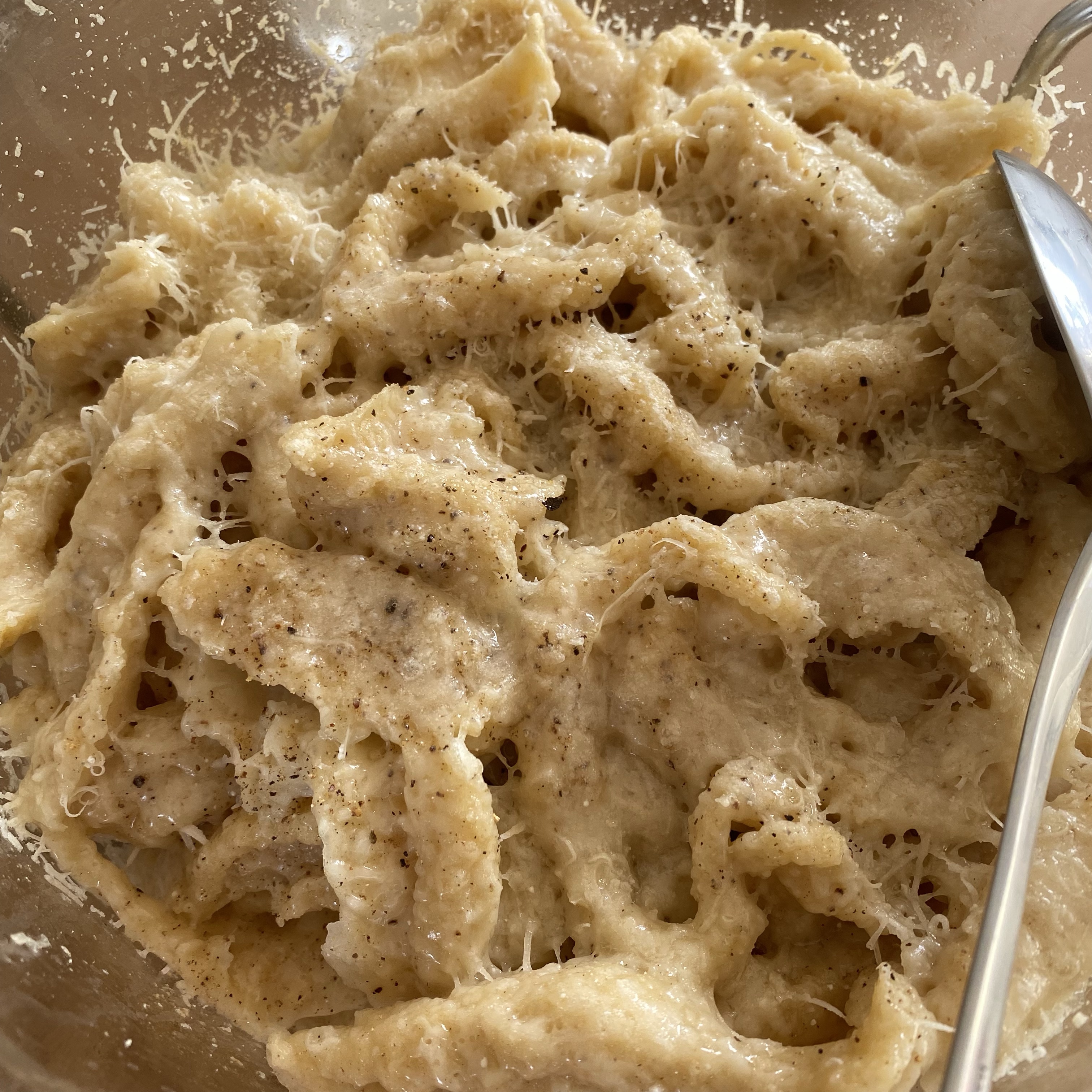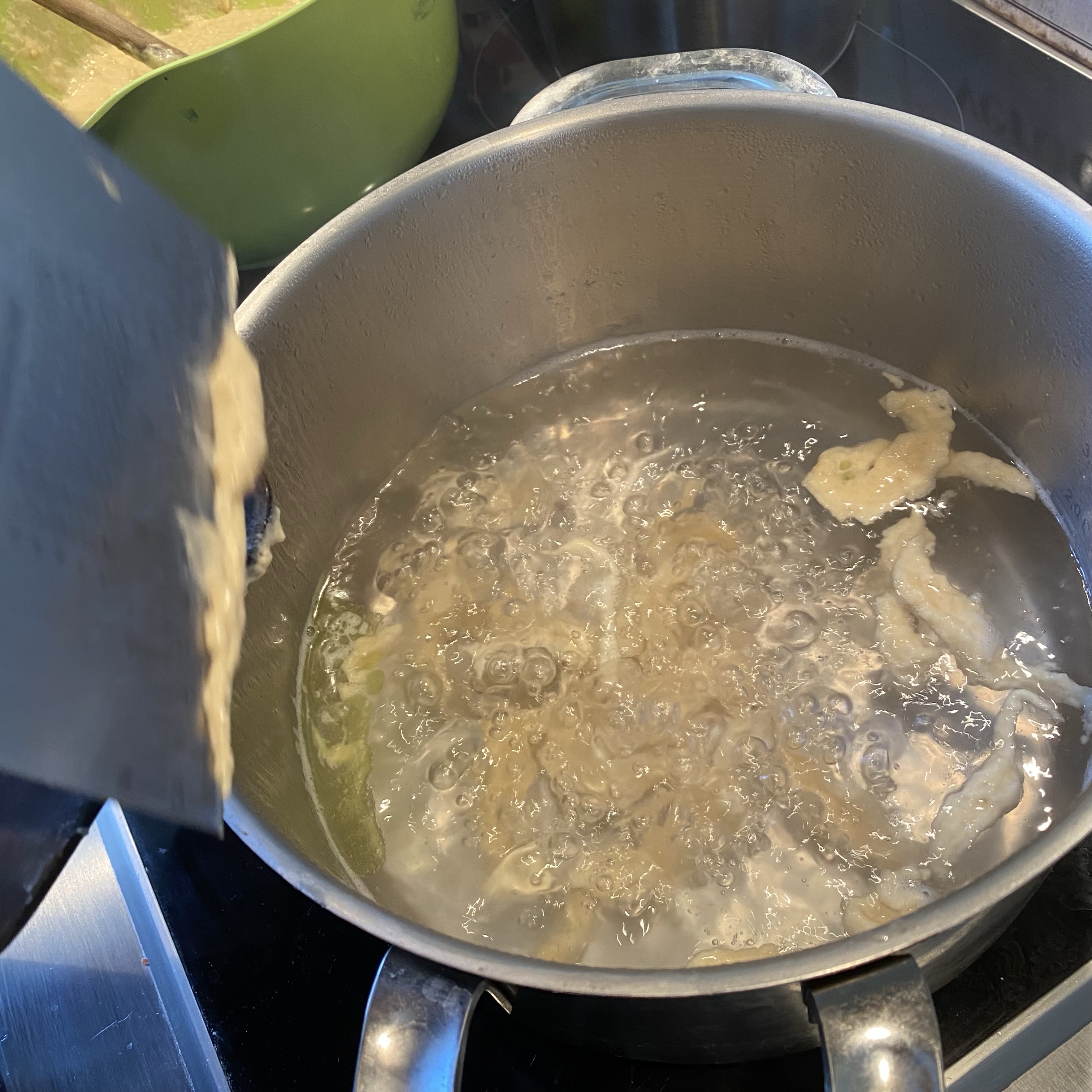 [kneteeis:] „Finde ich auch. Bei nächsten Mal müssen wir gucken, ob wir die Spätzle noch etwas kleiner hinkriegen, damit mehr Käse pro Spätzle ist.“