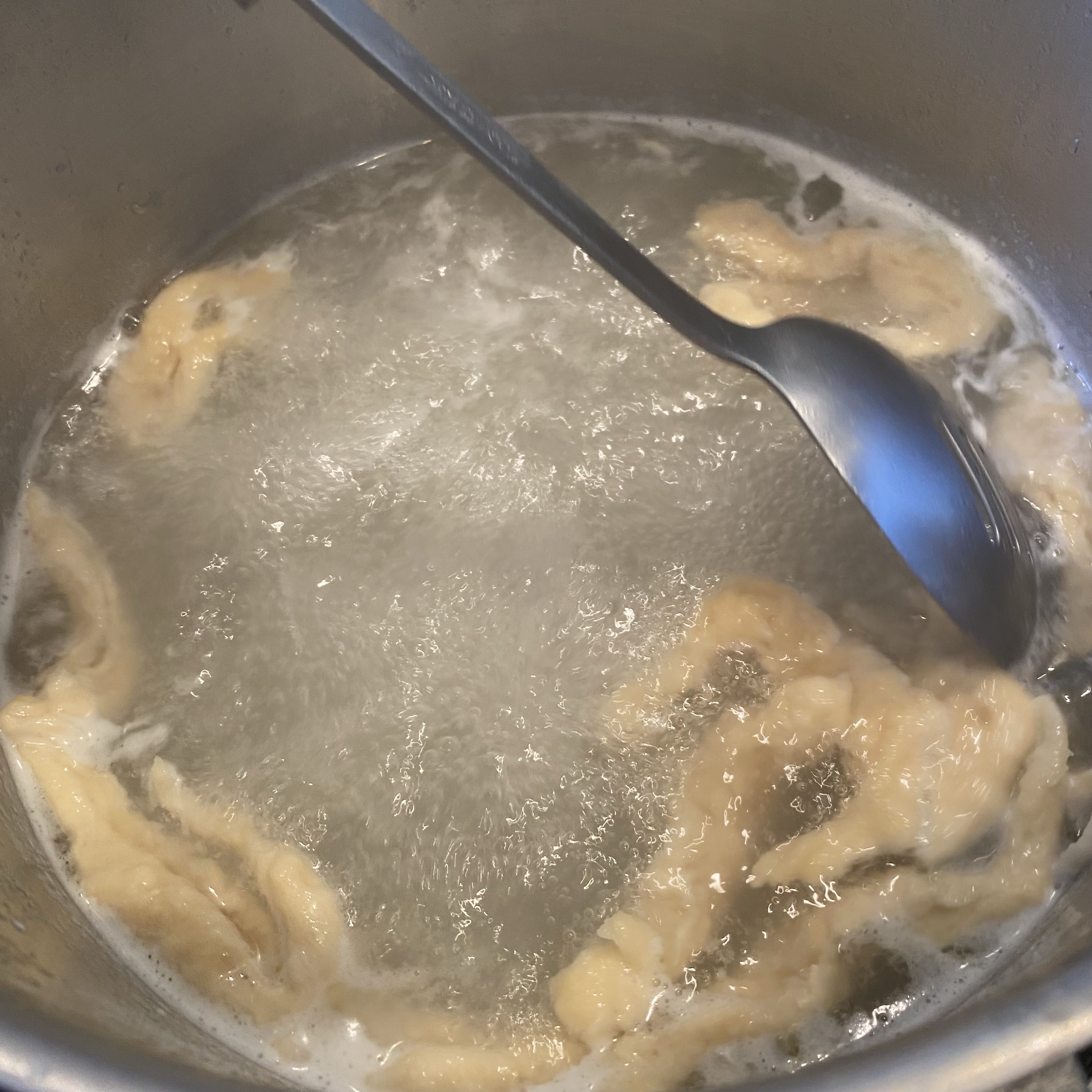 [GJ:] „Ich mache jetzt Käsespätzle nach dem Rezept aus dem Mauskochbuch. Hilfst Du mir?“