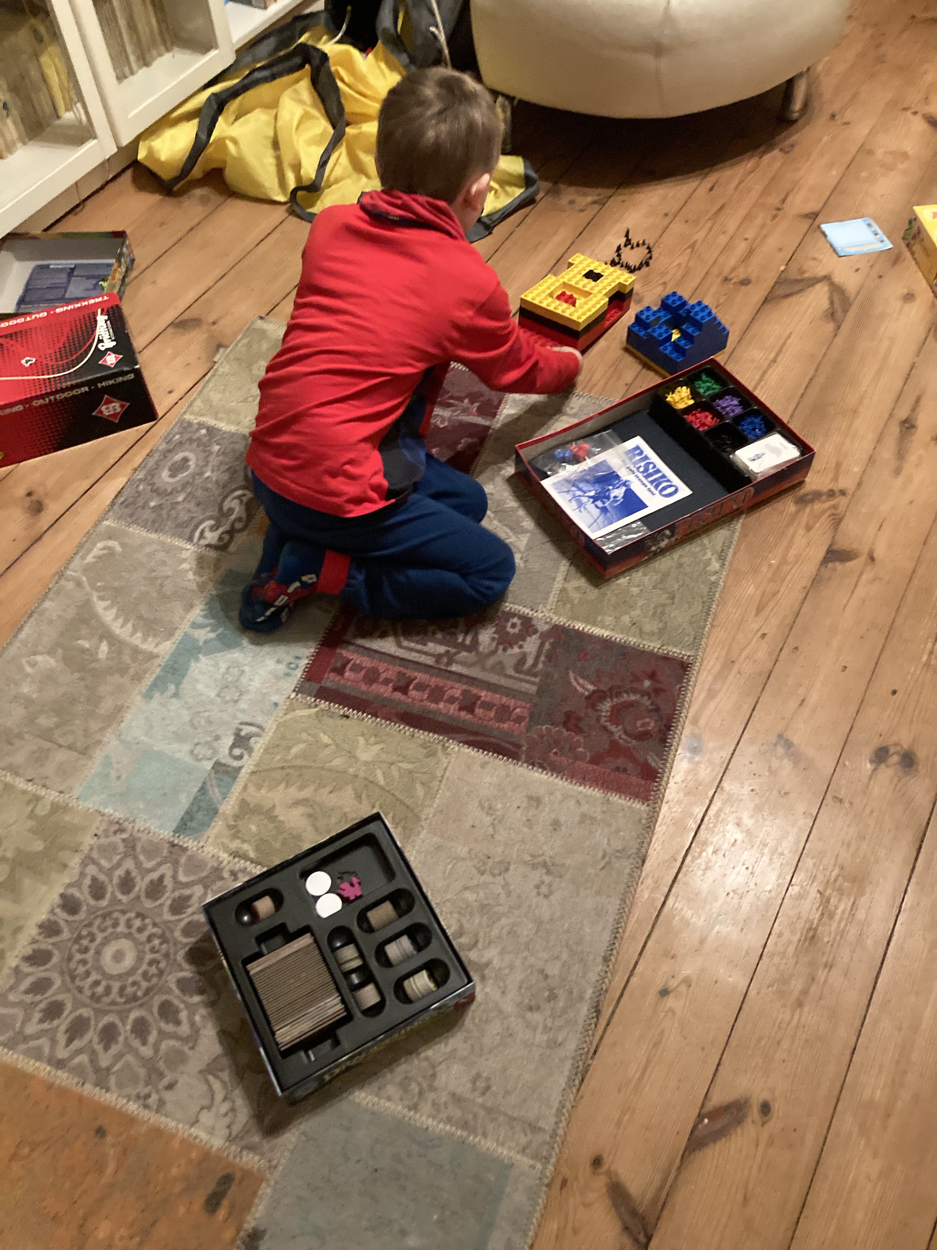 [Berlin. Sonntagvormittag. folienstern:] „Kleiner Junge, räumst Du bitte noch die Spiele und die Risiko-Figuren auf?“