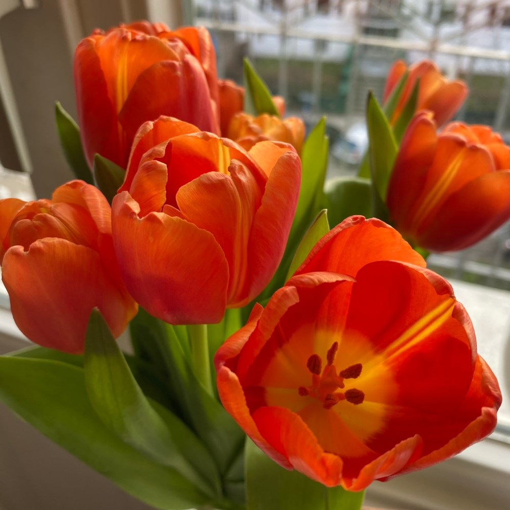 [kneteeis:] „Hast Du schon gesehen, wie schön die Tulpen blühen, die unsere Freundin mir am Donnerstag mitgebracht hat?“