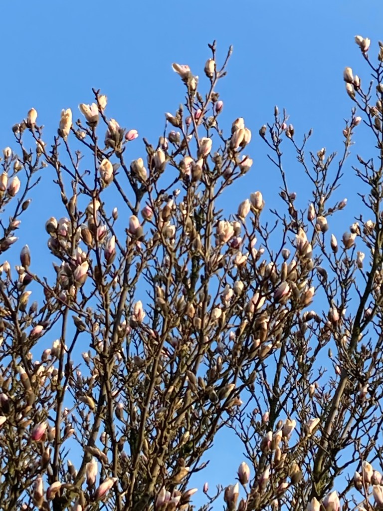 [folienstern:] „Oooh, schön, die Magnolie blüht schon!“