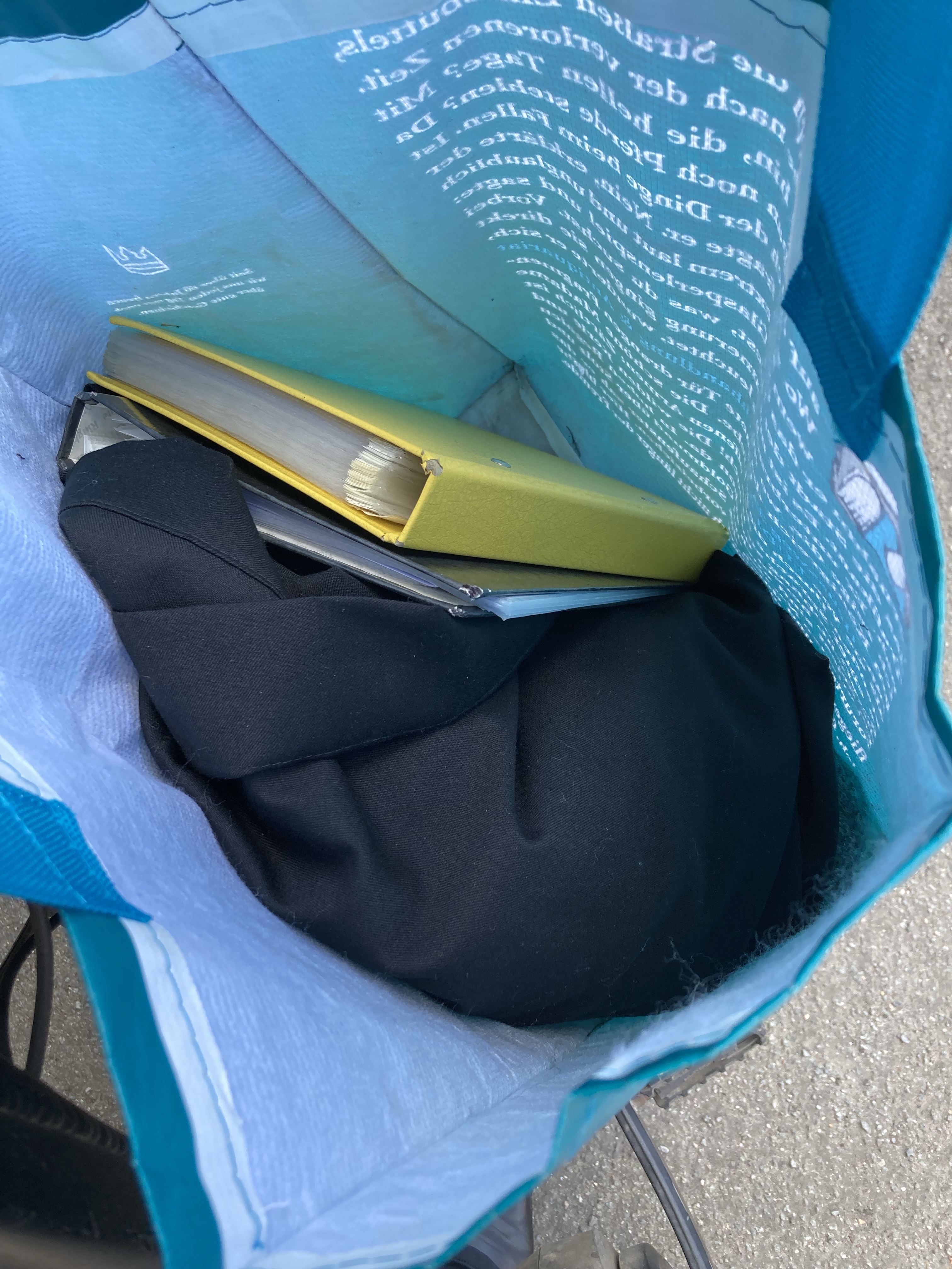 [folienstern:] „Ups – jetzt habe ich das Rad gar nicht angeschlossen gehabt. Gut, dass es noch da ist nach dem Gottesdienst! Jetzt noch schnell den Talar einpacken.“