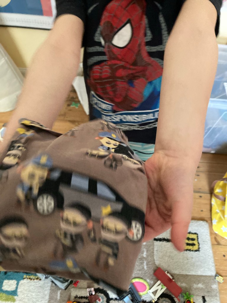 [KJ:] „Nein, ich sortiere. Und ich falte, auf meine Spezialweise. Und die Superheldensachen kommen extra.“